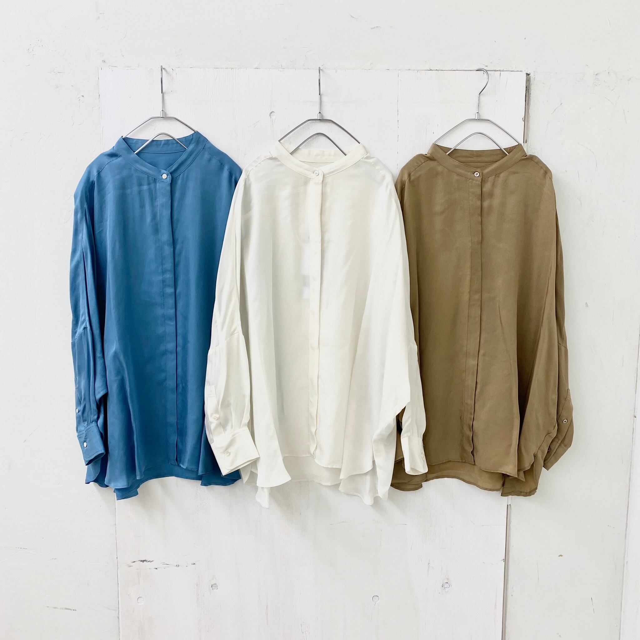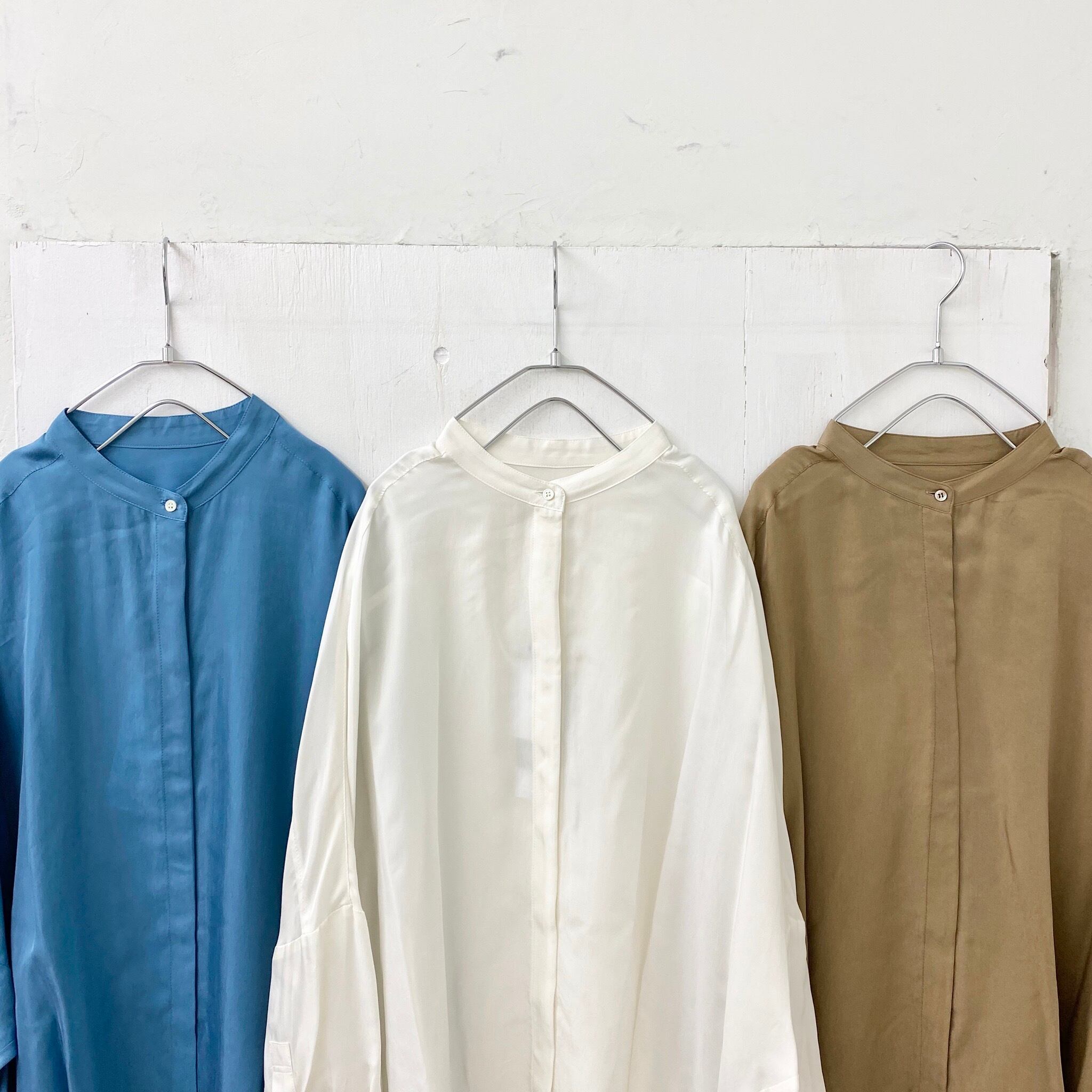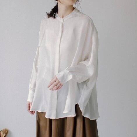 中目黒発の人気ブランドAudrey and Jhon Wadから、流行のバンドカラーのワイドブラウスが。