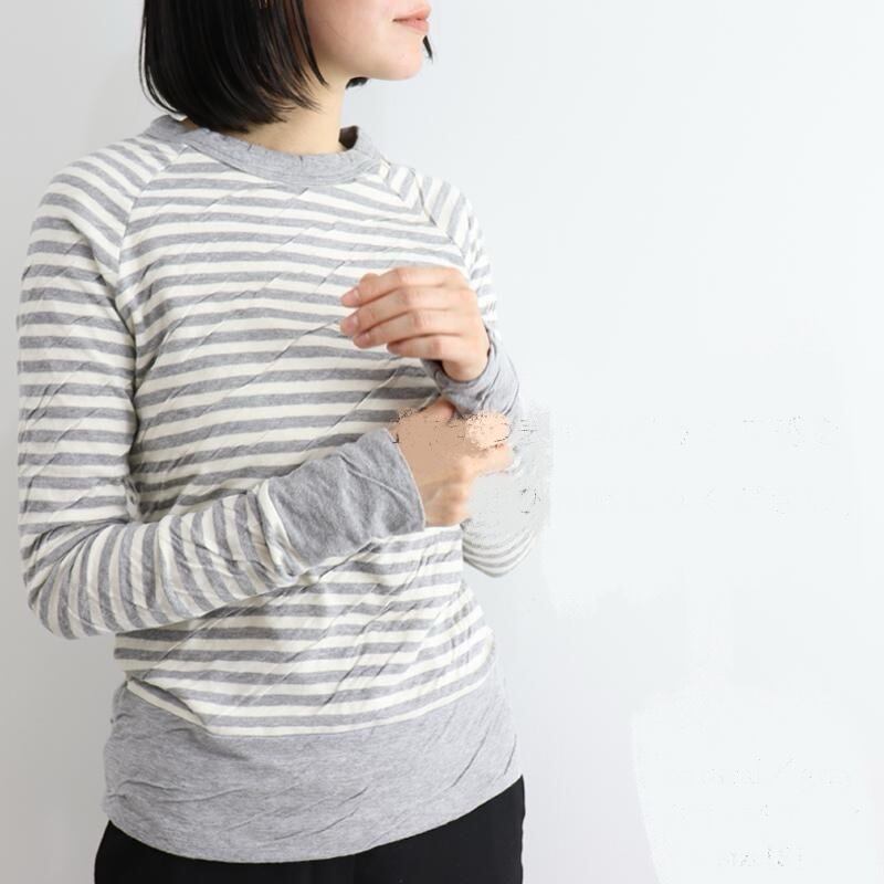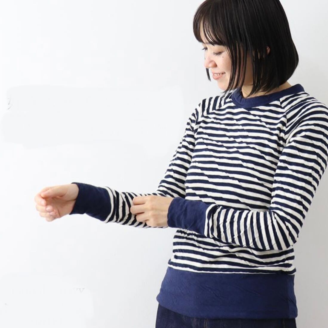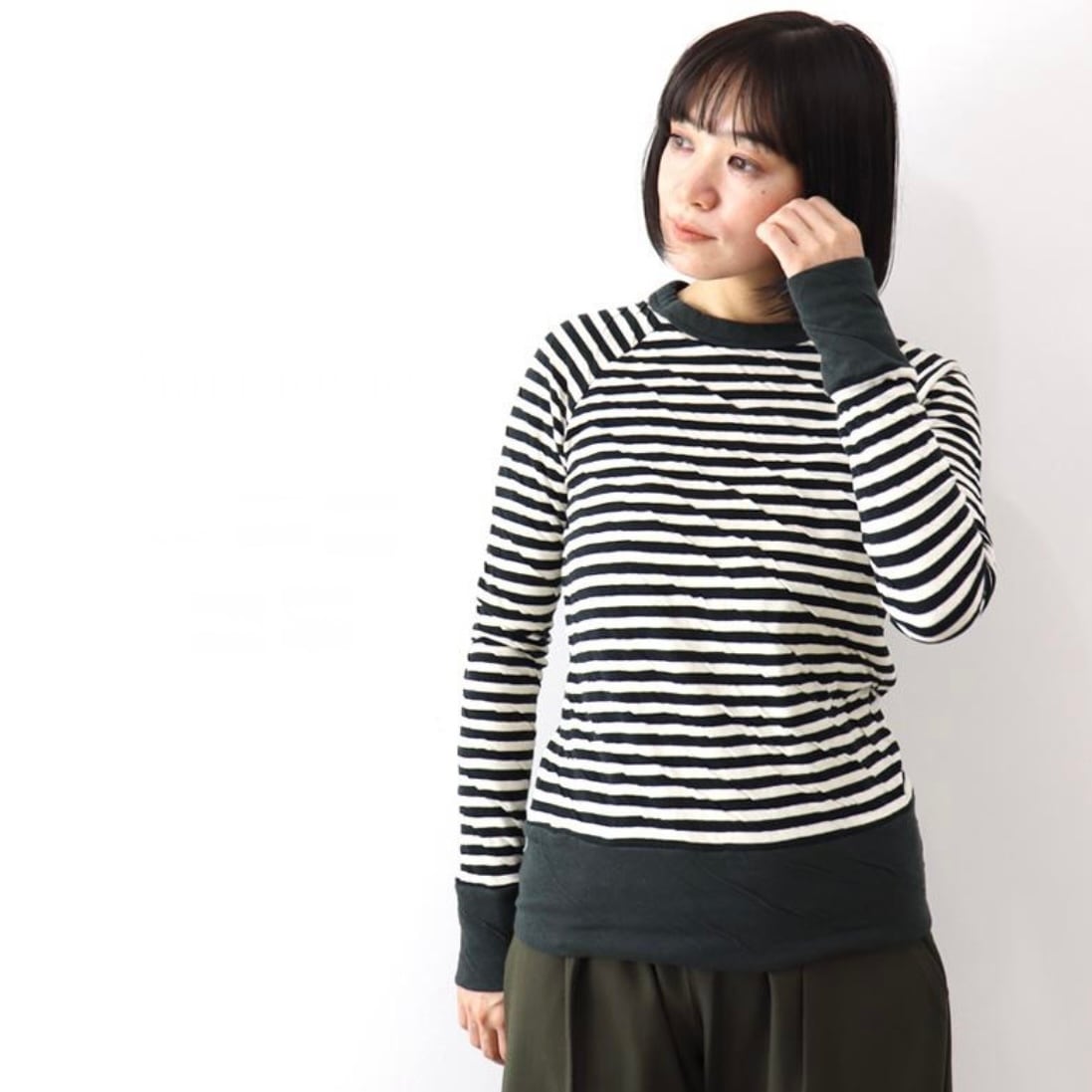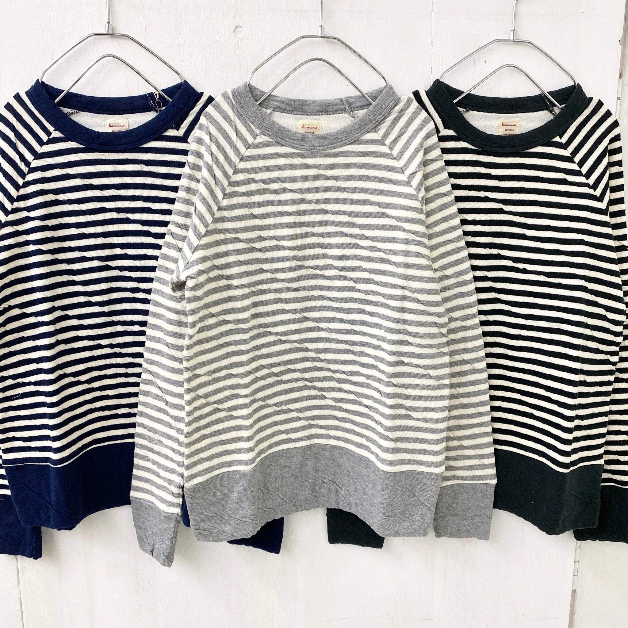 【harmonie / アルモニ】接結 ボーダー切替 ラグラン プルオーバー カットソー