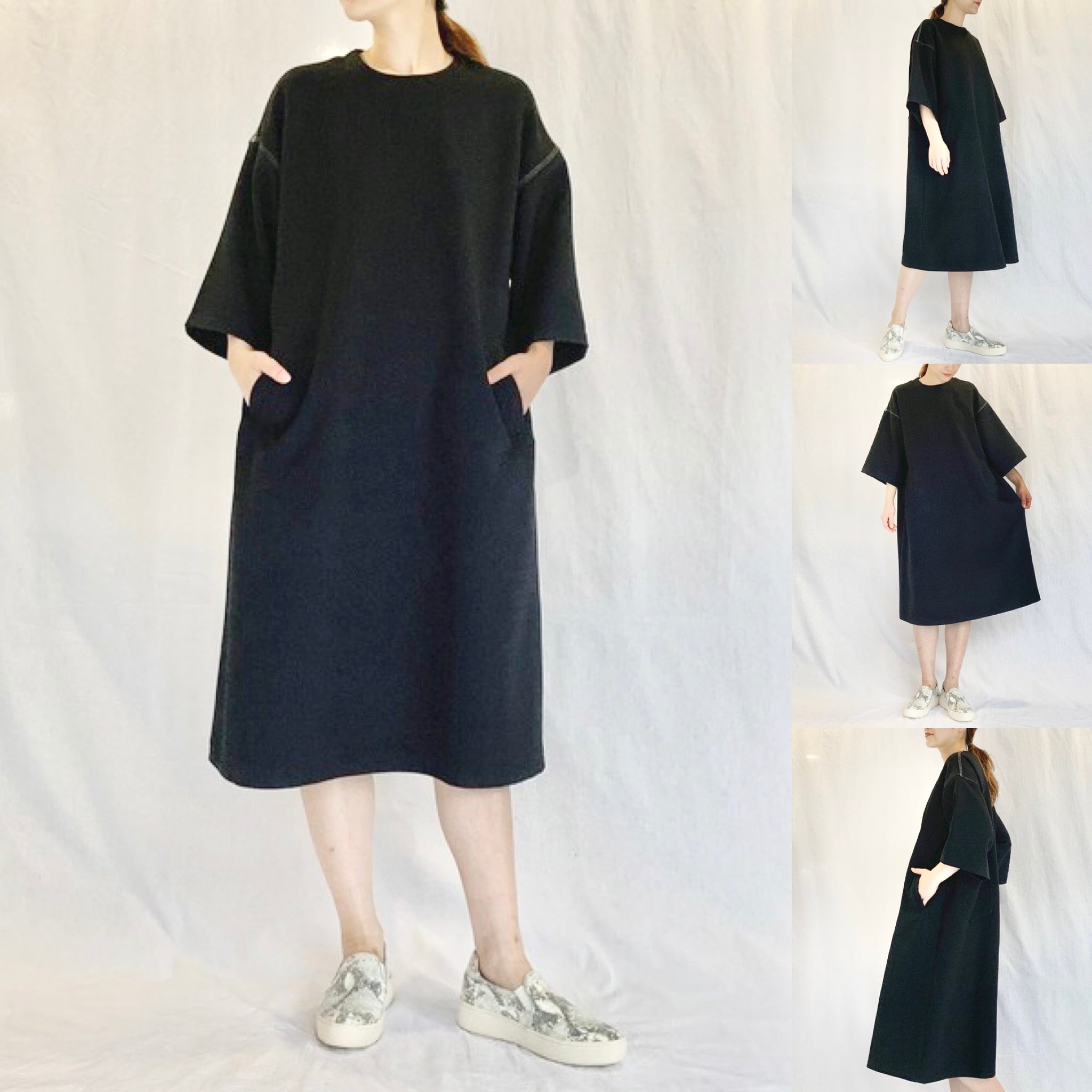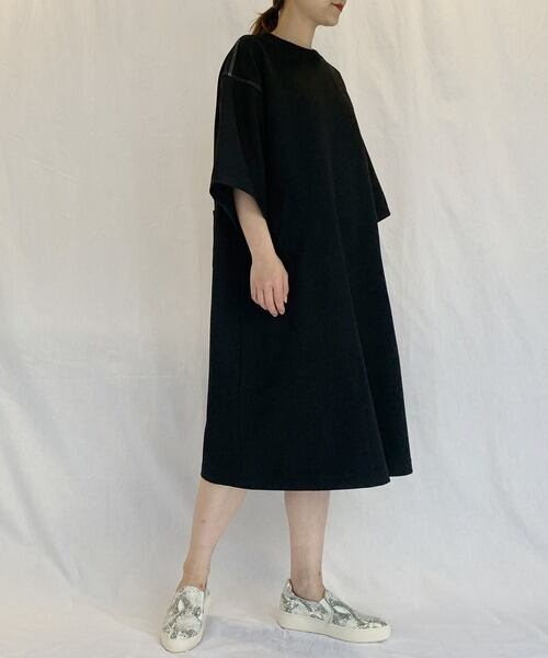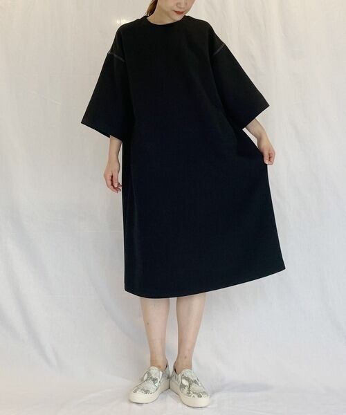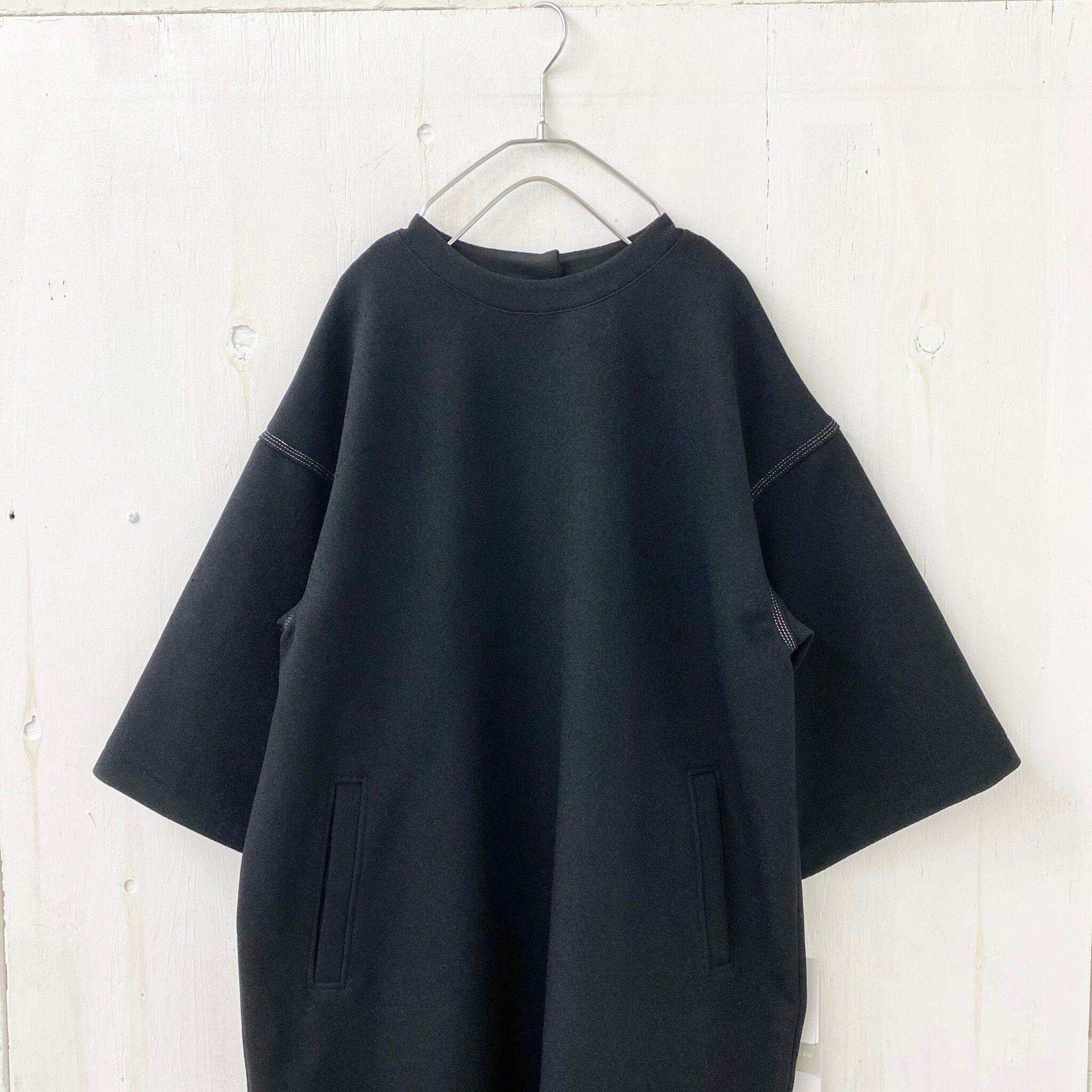 ウール調 ダブル クロス 5分袖 ワンピース