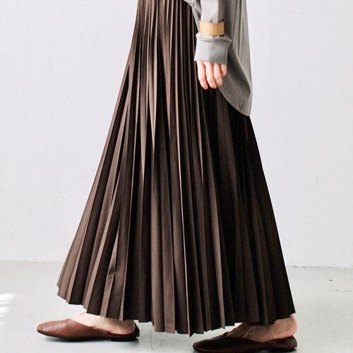 上品な光沢感と美しいプリーツ、マキシの丈感が