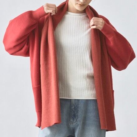 ショールカラーも柔らかい印象で様々な着こなしで使えます。