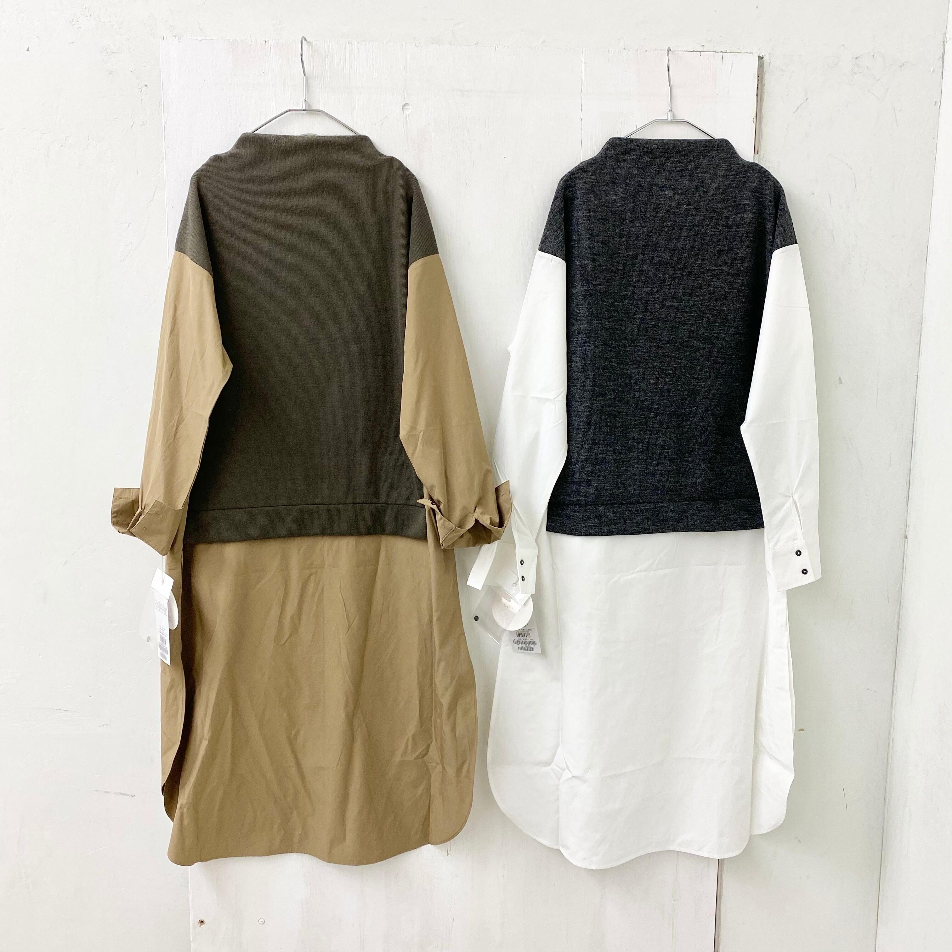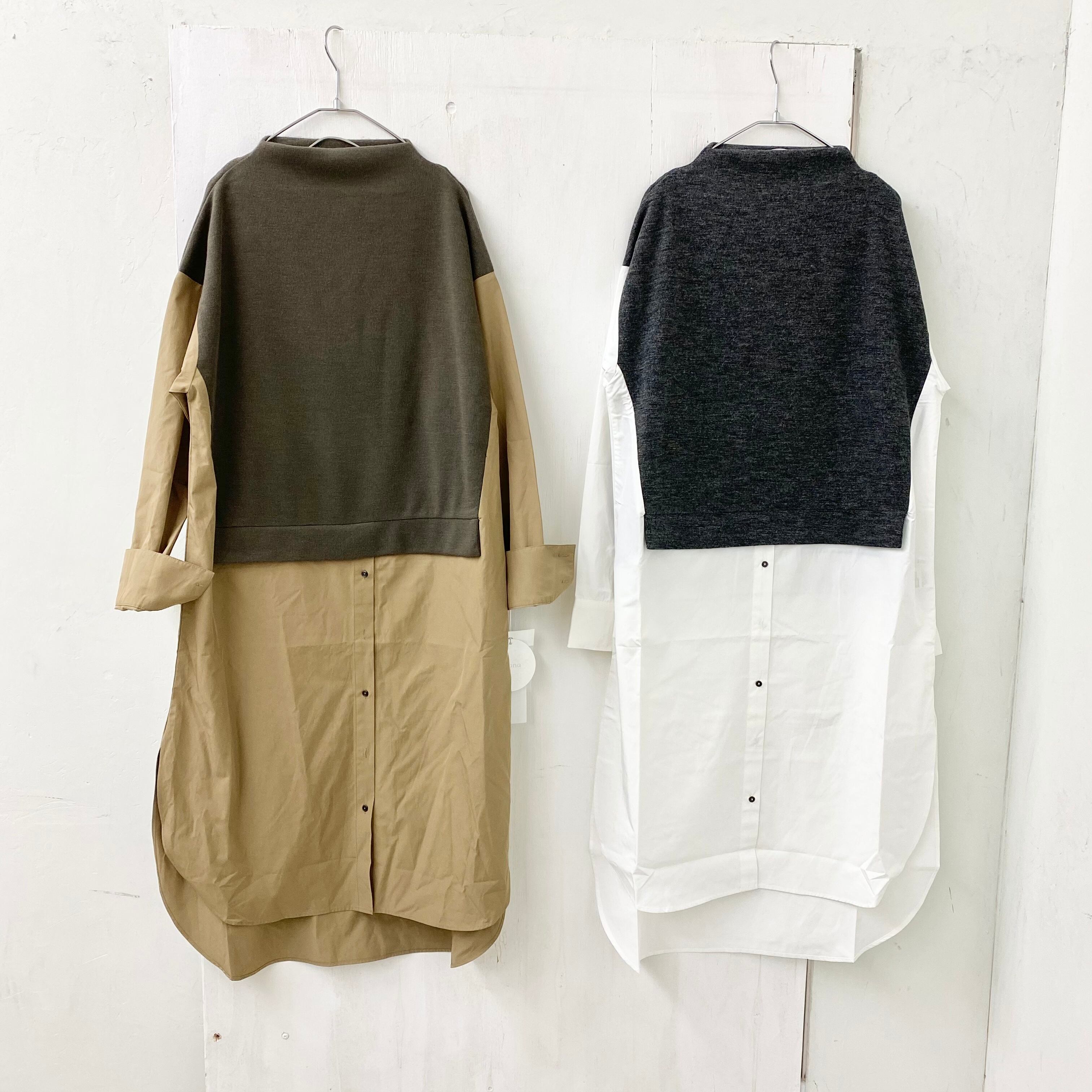 anana ハイゲージ ボトル ネック ニット x ブラウス ドッキング ワンピース
