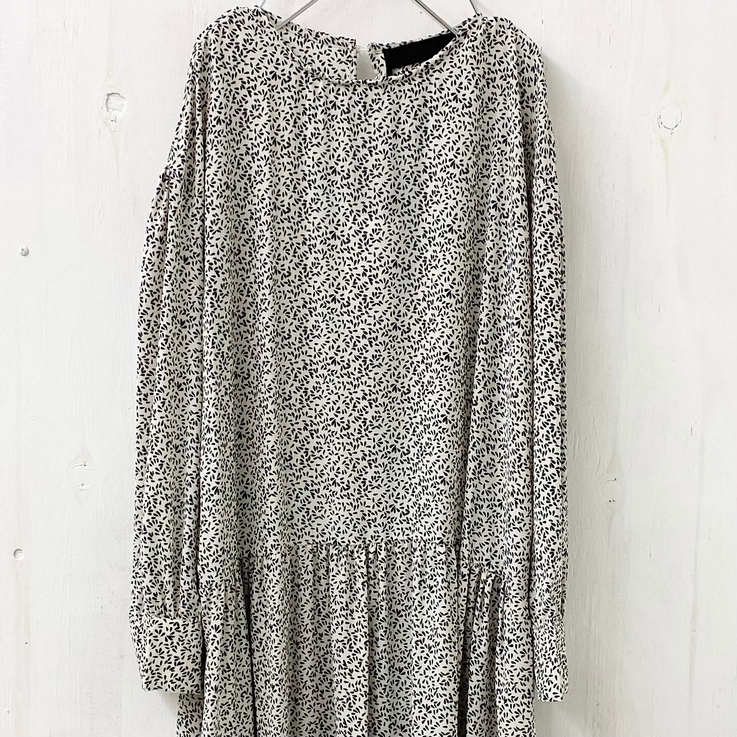 総柄 プリント 切替 ギャザー ロング ワンピース