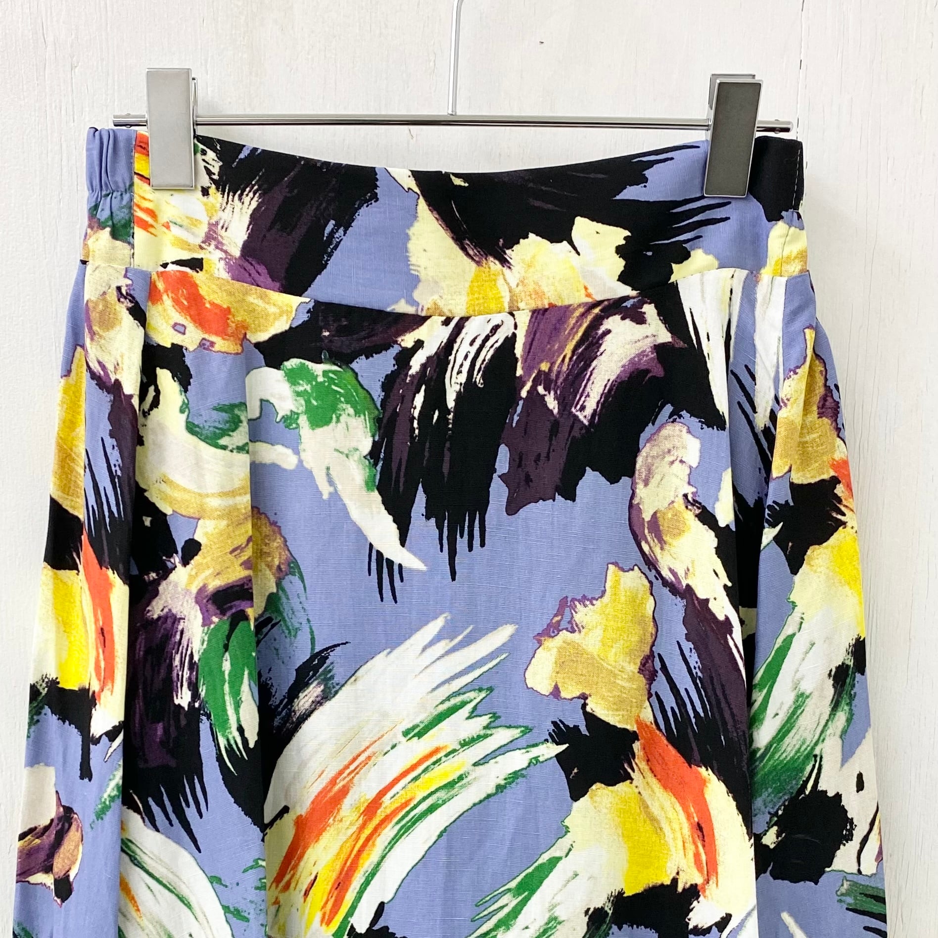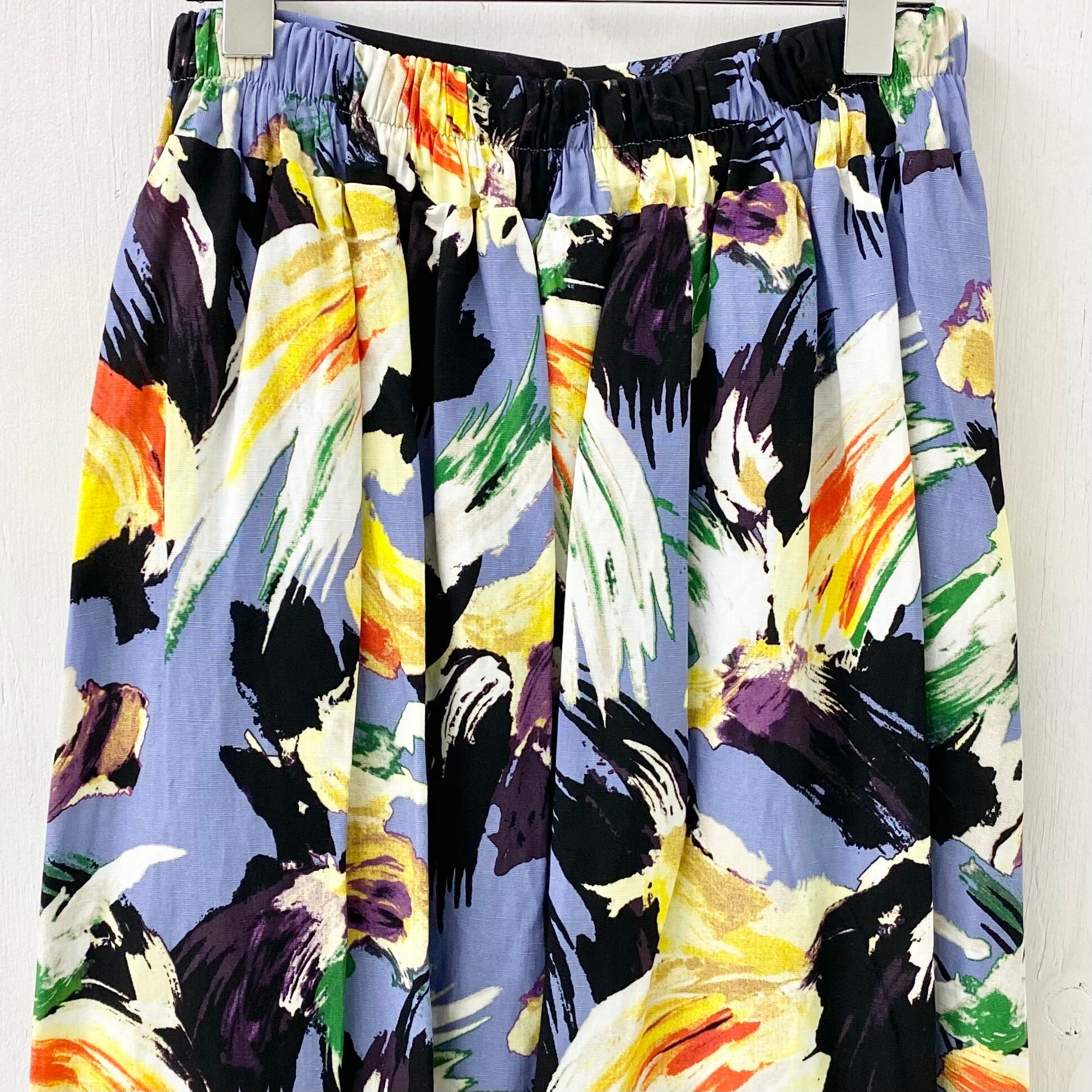 【micalle micalle】リネンレーヨン 水彩柄 ロング スカート