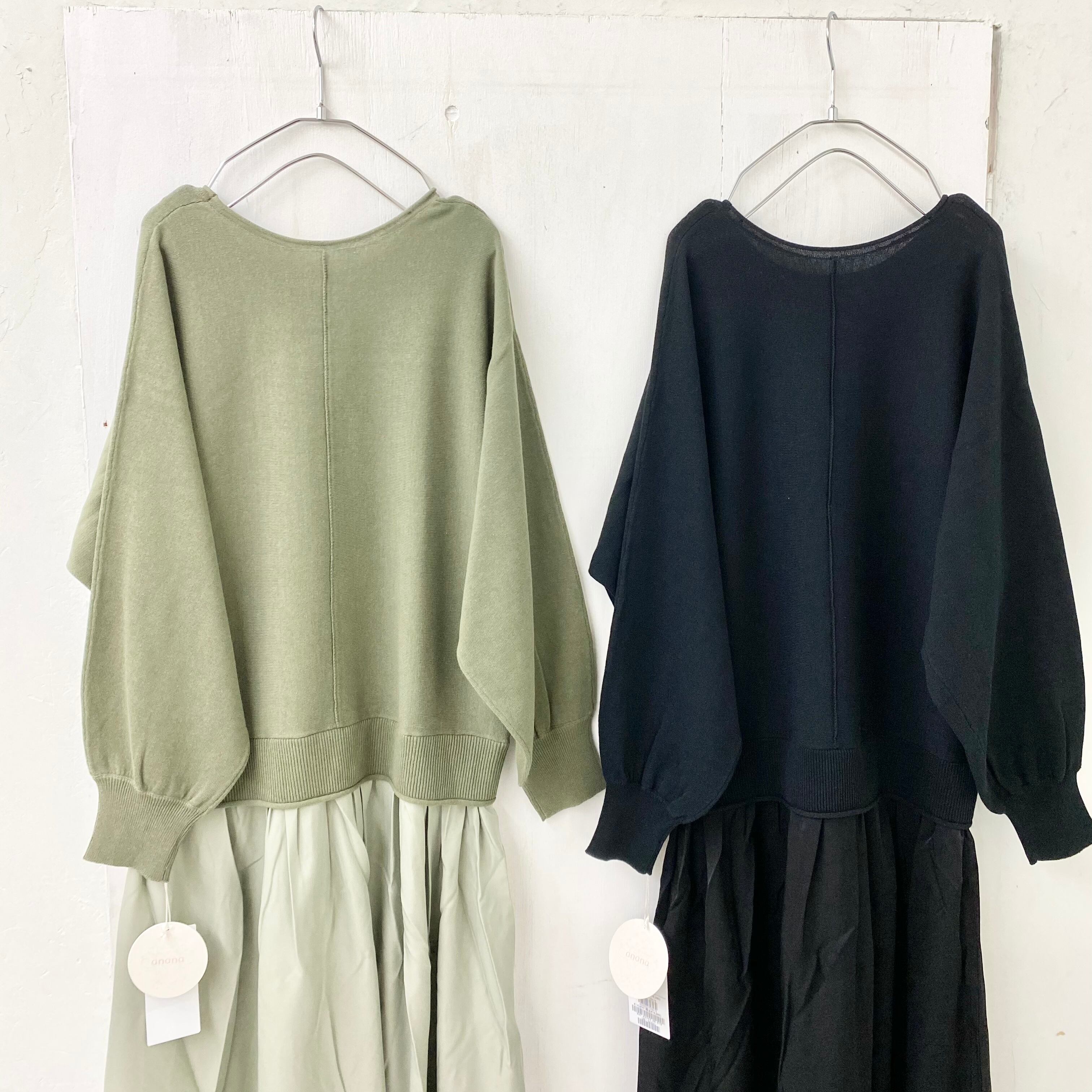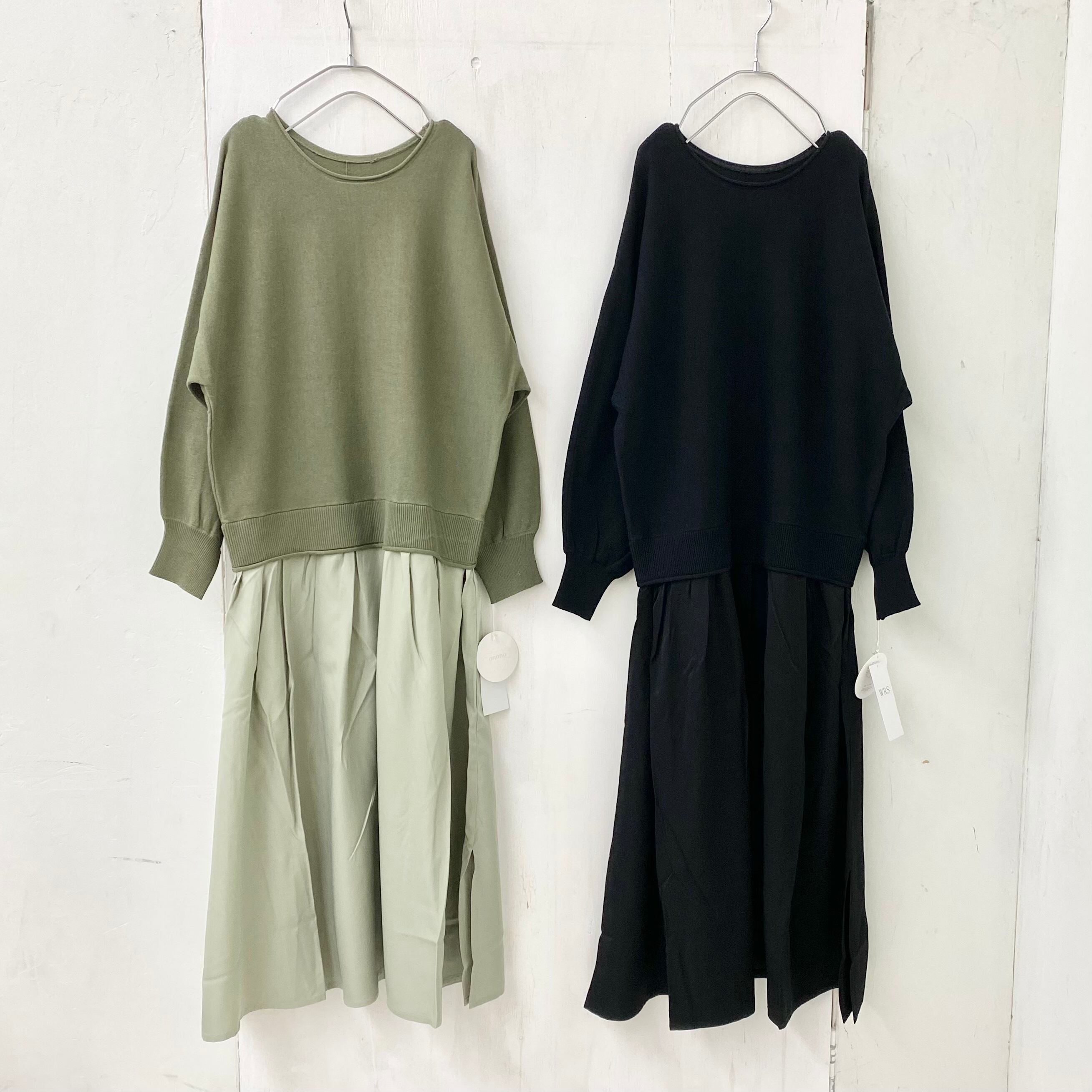 【anana】コットン ニット X レーヨン ドッキング ワンピース