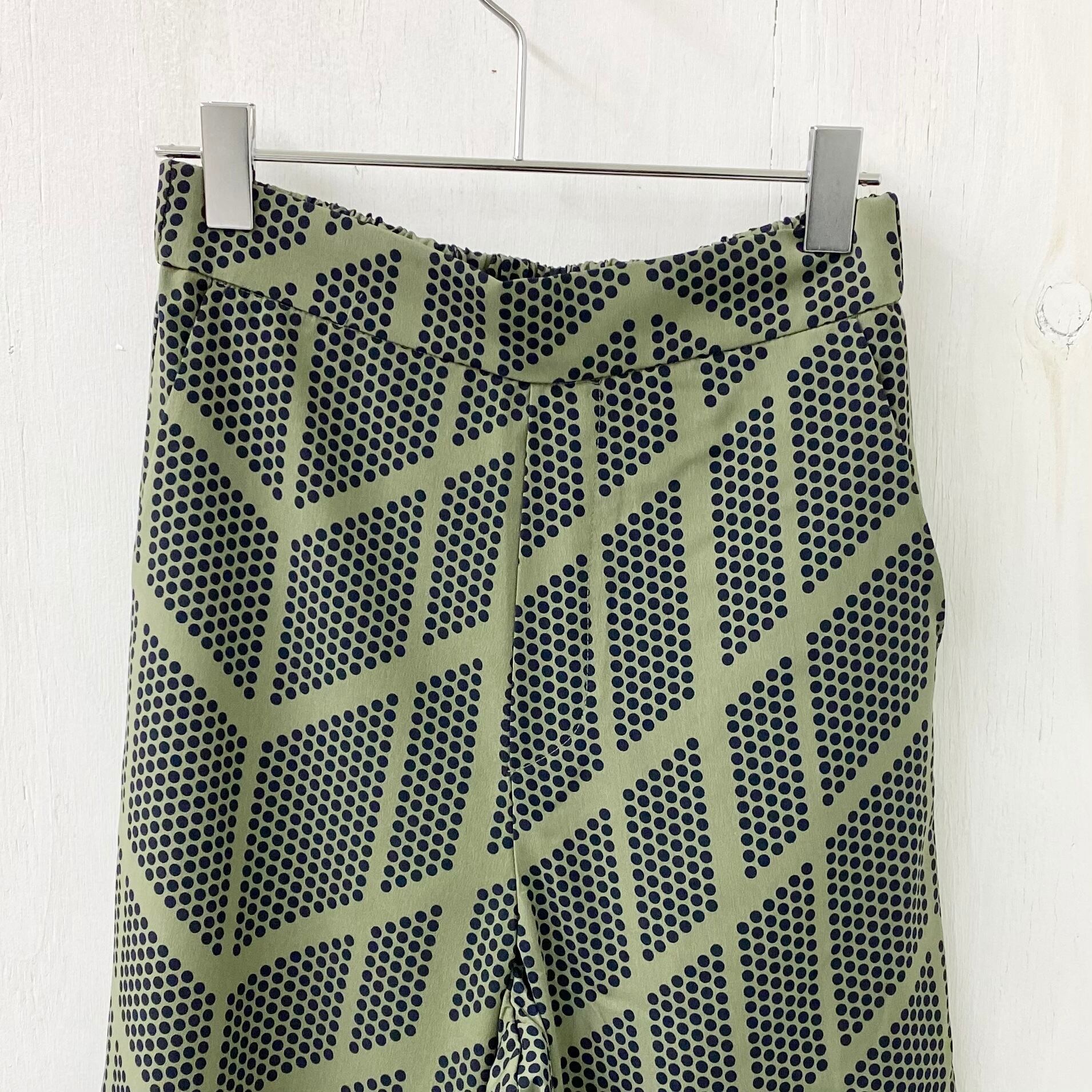 幾何学柄のスタイリッシュなガウチョパンツ。