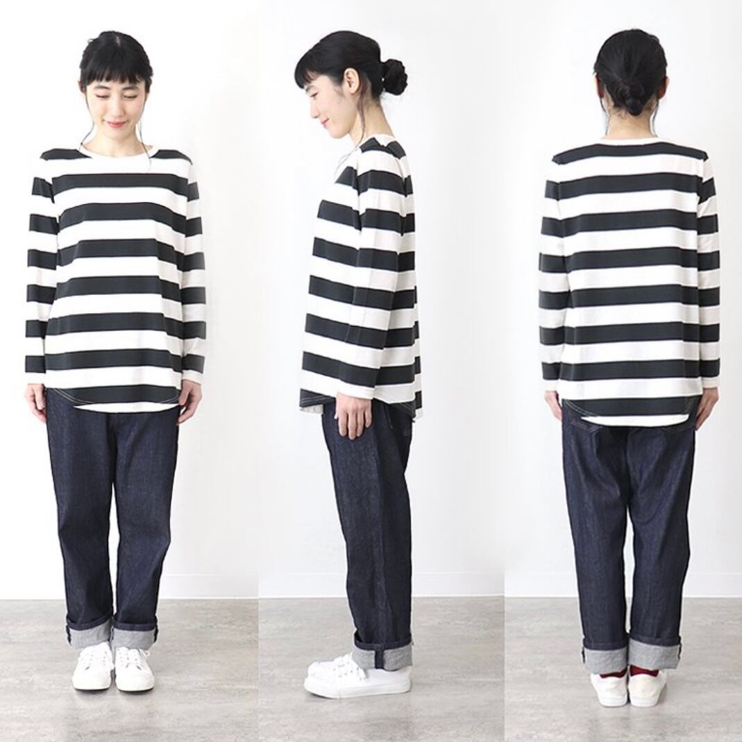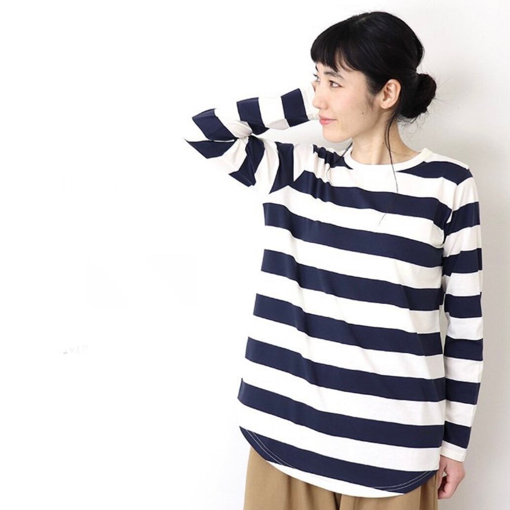 【harmonie / アルモニ】オーガニック コットン 太ボーダー 裾ラウンド ロンTEE ロング丈