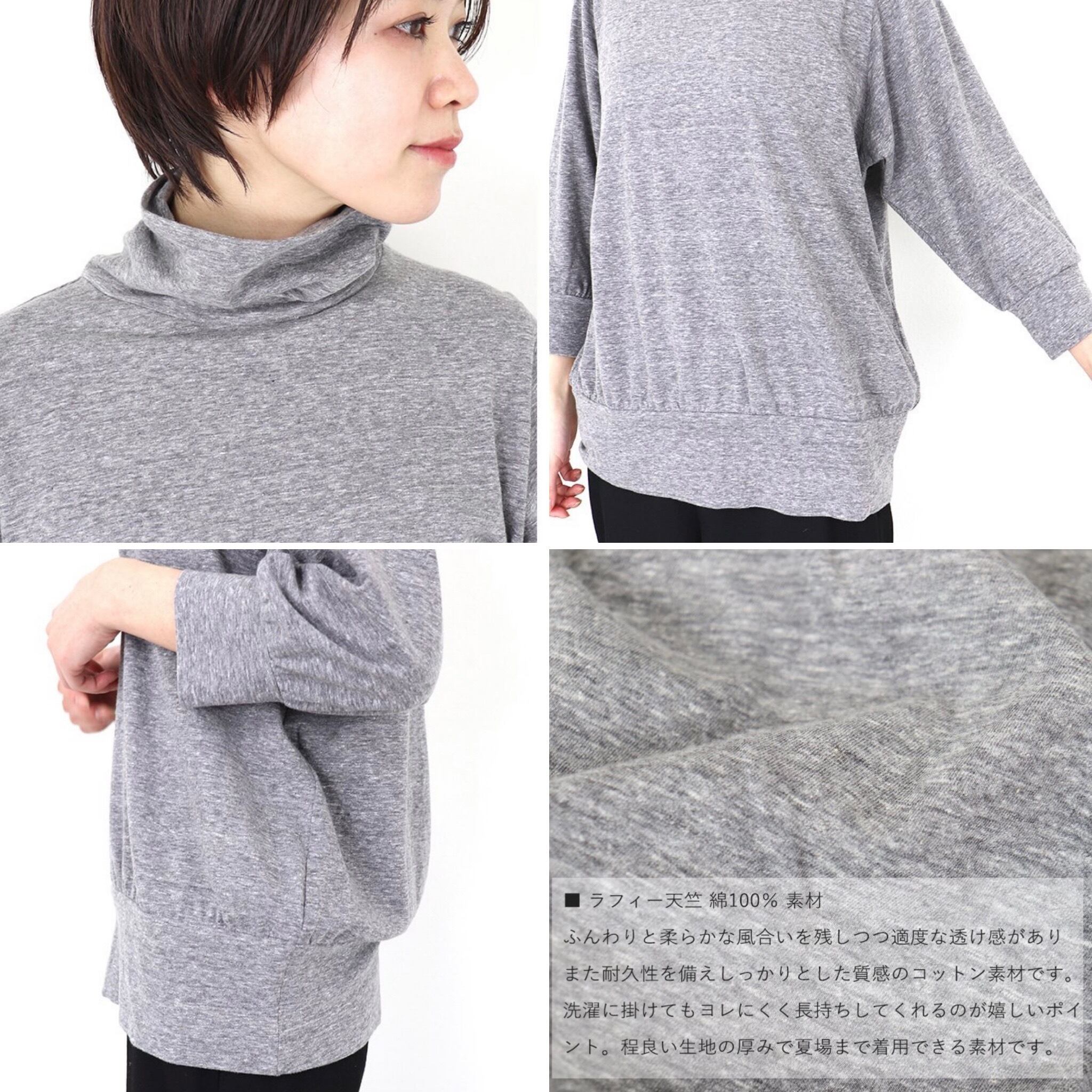 ラフィー天竺 ドルマン タートル ネック 7分袖