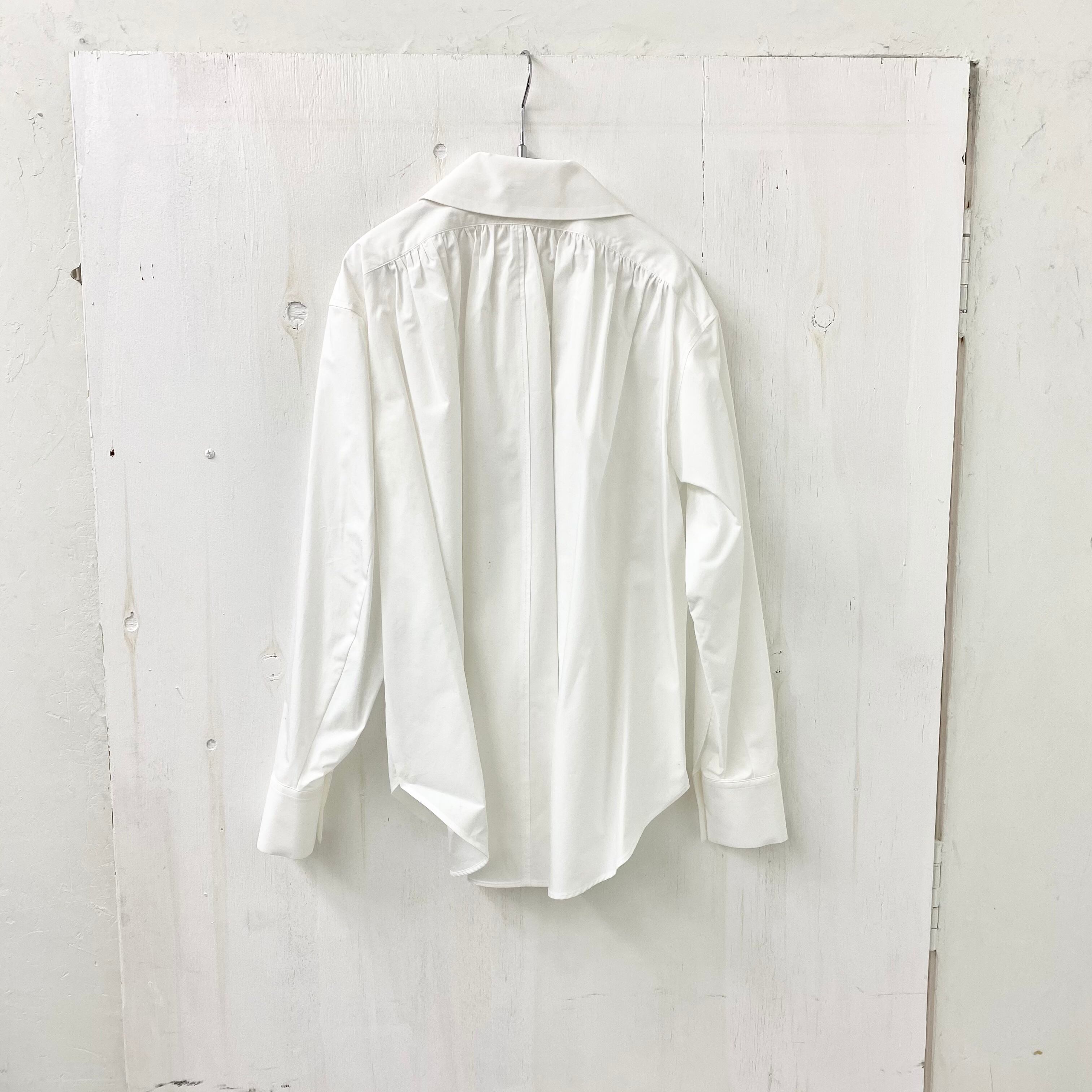 中目黒発の人気ブランドAudrey and Jhon Wadから、流行の大きめ襟がアクセントのオープンカラーのギャザーブラウスが。