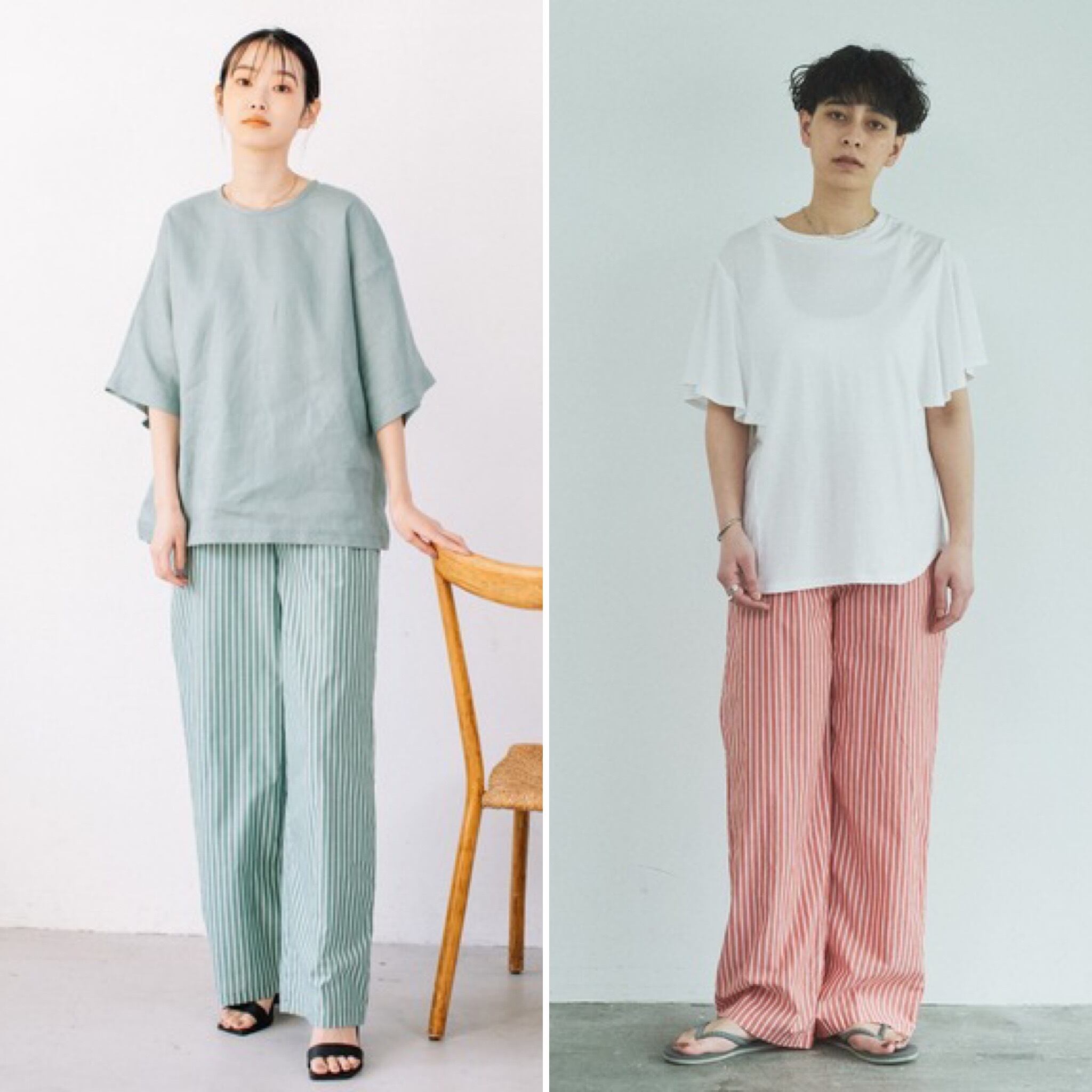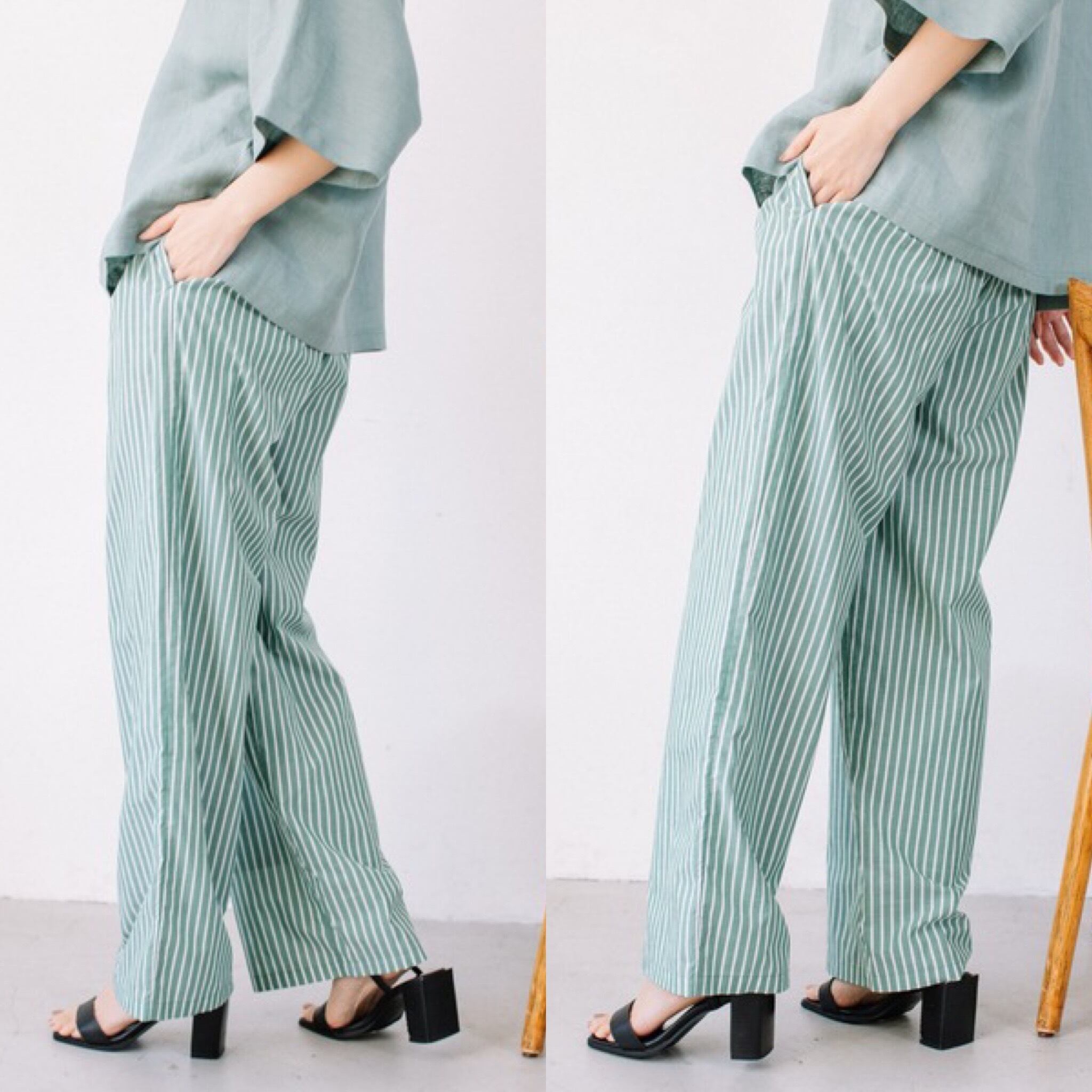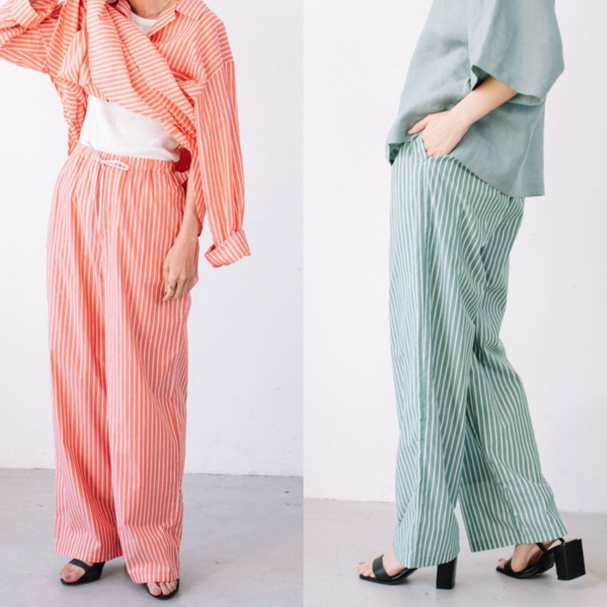 中目黒発の人気ブランドAudrey and Jhon Wadから、ローン素材のオリジナルストライプの絶妙なカラーの上品なイージーパンツが。