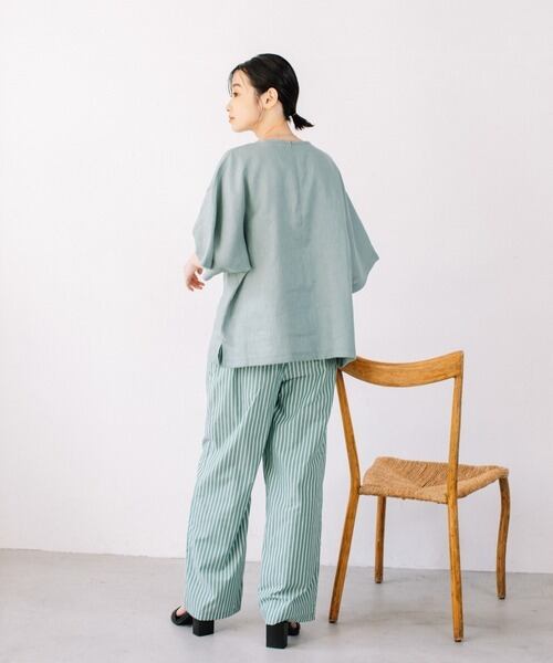 コットン素材ストライプイージーパンツ
