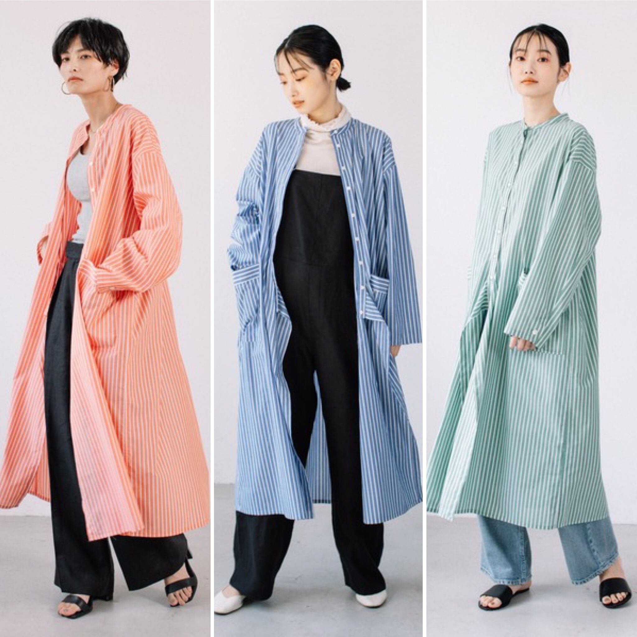 中目黒発の人気ブランドAudrey and Jhon Wadから、ローン素材のオリジナルストライプの絶妙なカラーの随所のデザインが人と差のつくシャツコートが。
