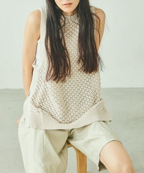 中目黒発の人気ブランドAudrey and Jhon Wadから、透かし編みで仕上げた程よいルーズ感のニットベストが。