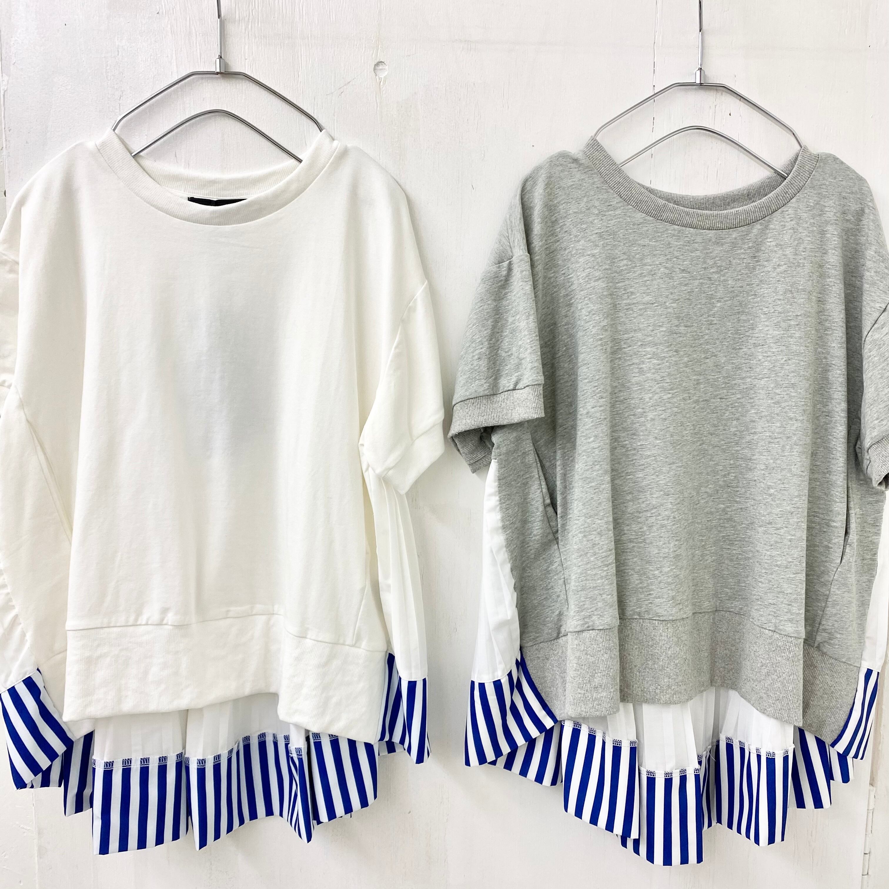 ストライプ切替 プリーツ ドッキング TEE