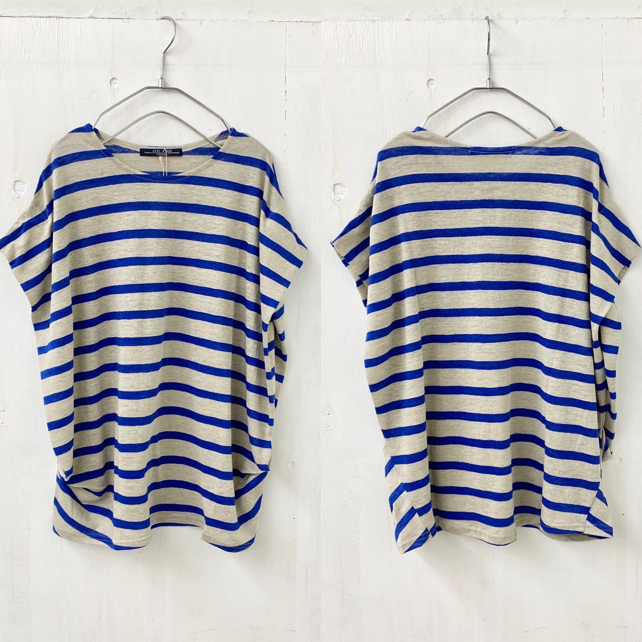 【ciel d'ete / シャルデテ 】リネン ジャージ 天竺 ボーダー ウエスト タック リラックス TEE