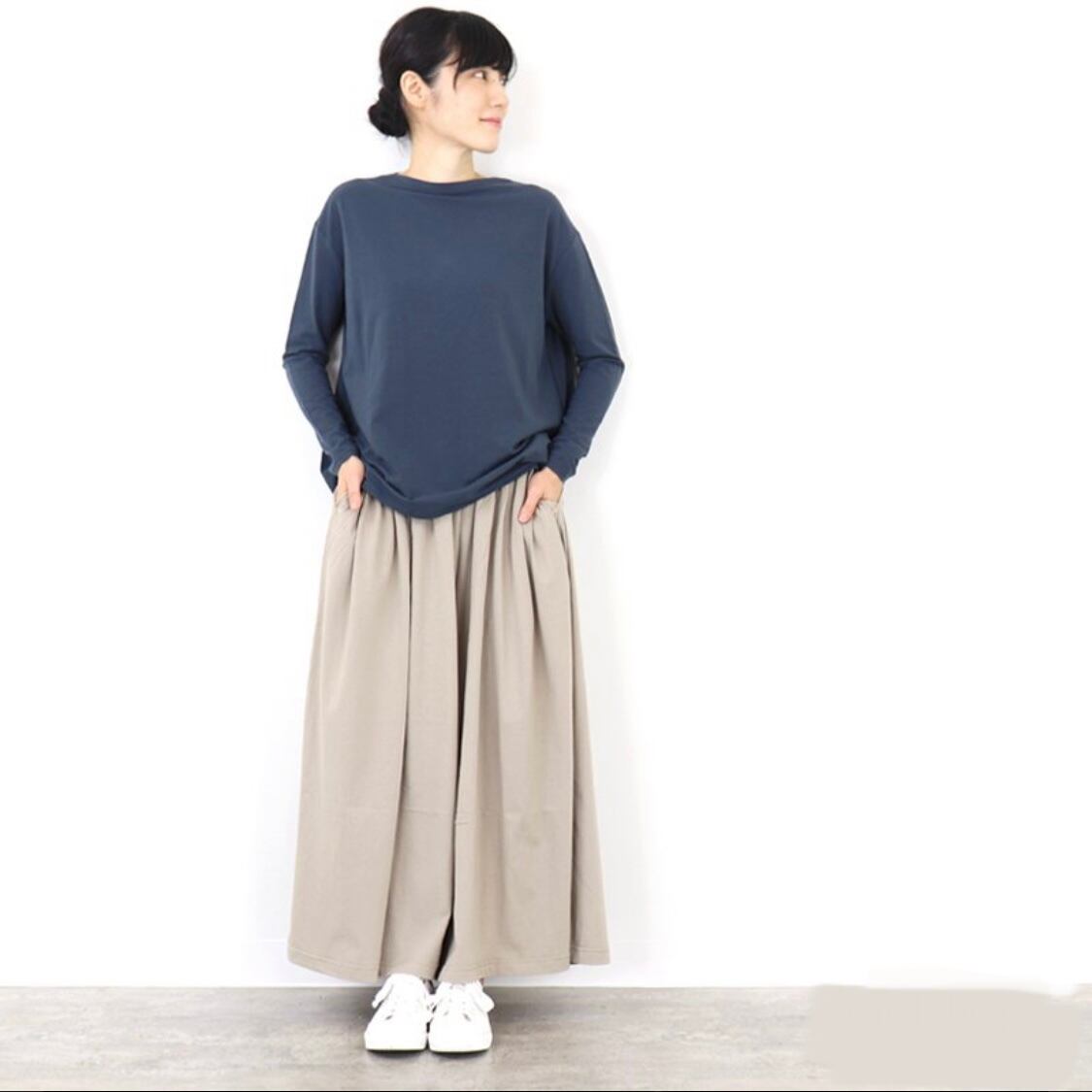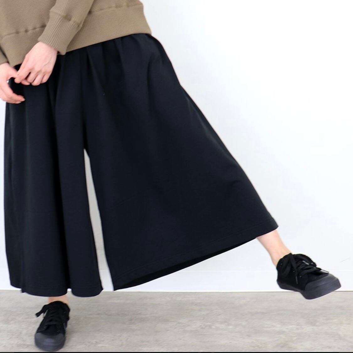 【harmonie / アルモニ】オーガニック コットン ふんわり天竺 ギャザー ワイド パンツ