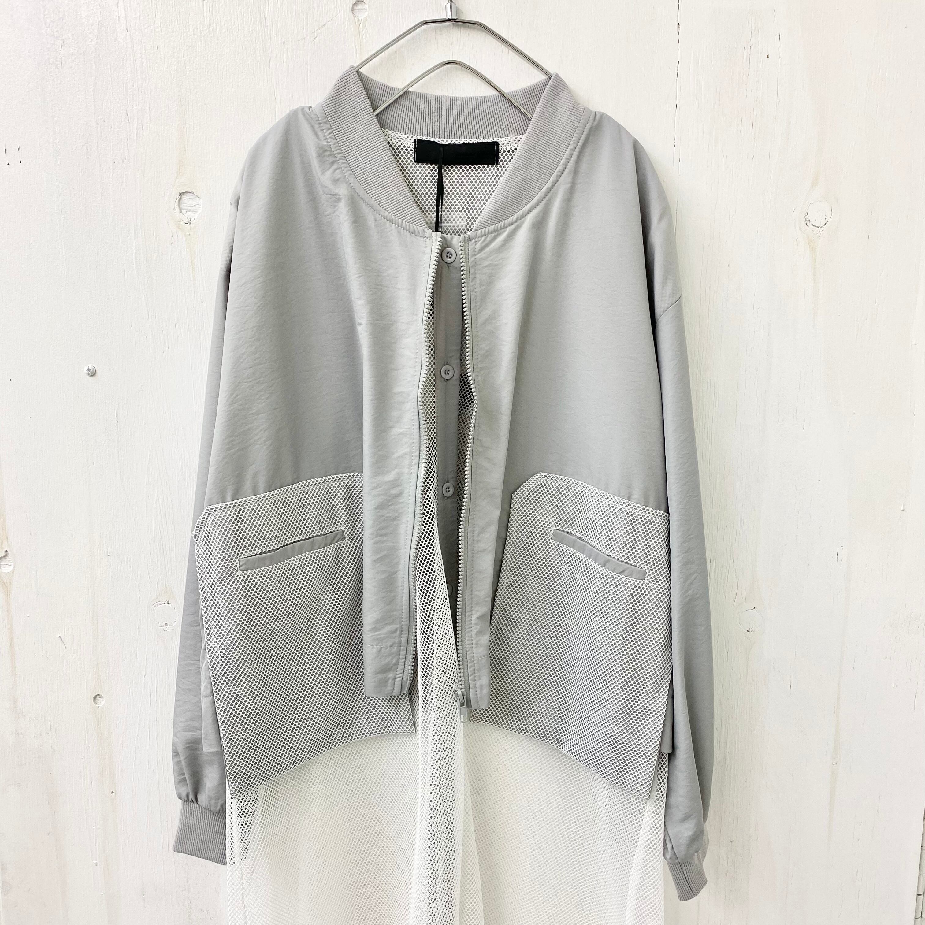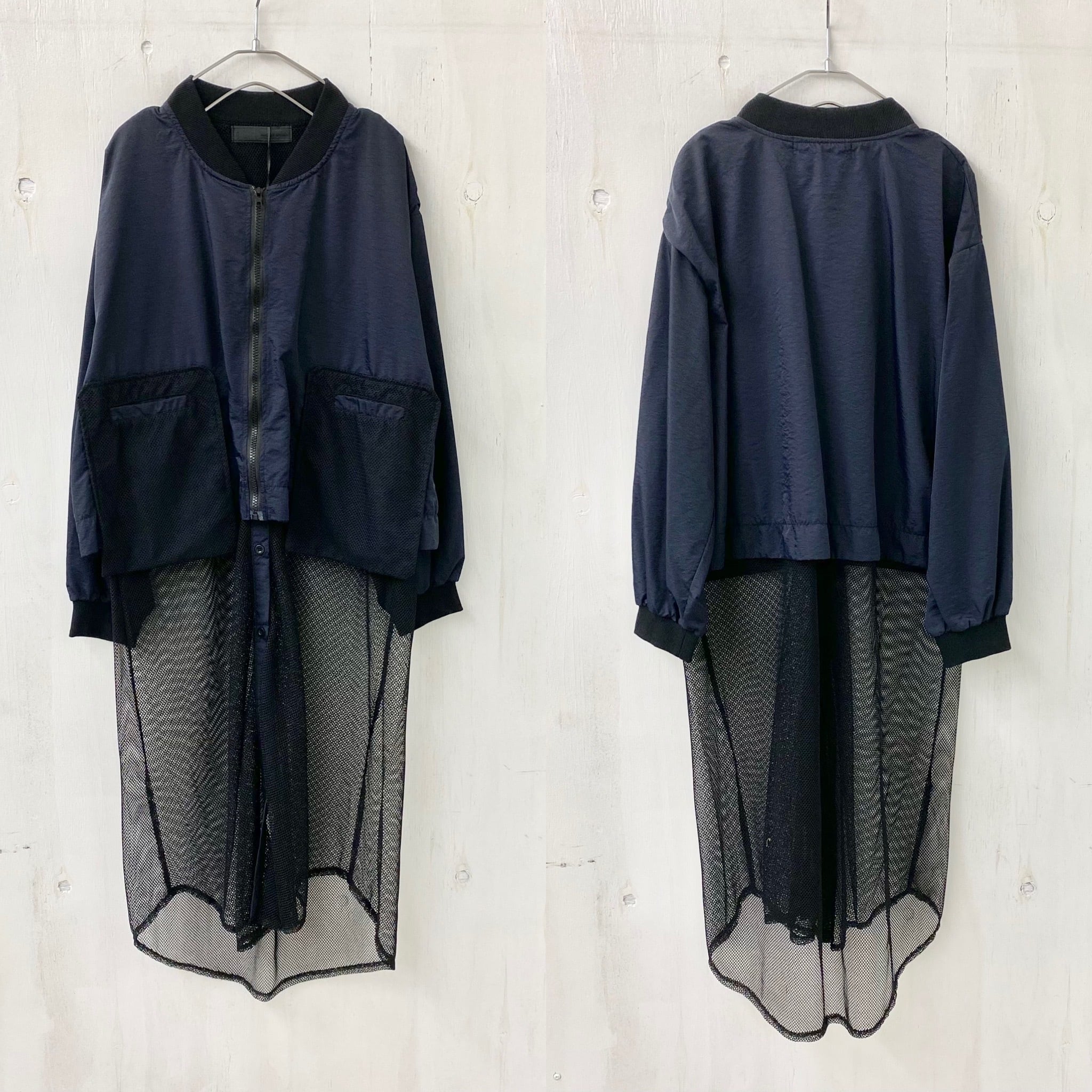 【micalle micalle】ナイロン X メッシュ ロング ジャケット ZIP ブルゾン