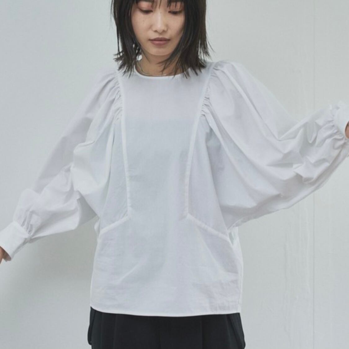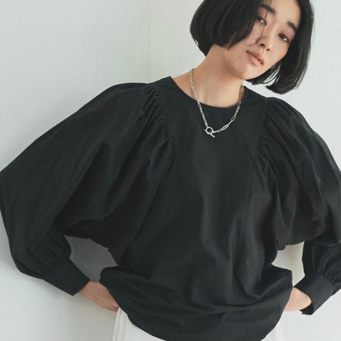 ギャザーたっぷりのドルマンスリーブブラウスが