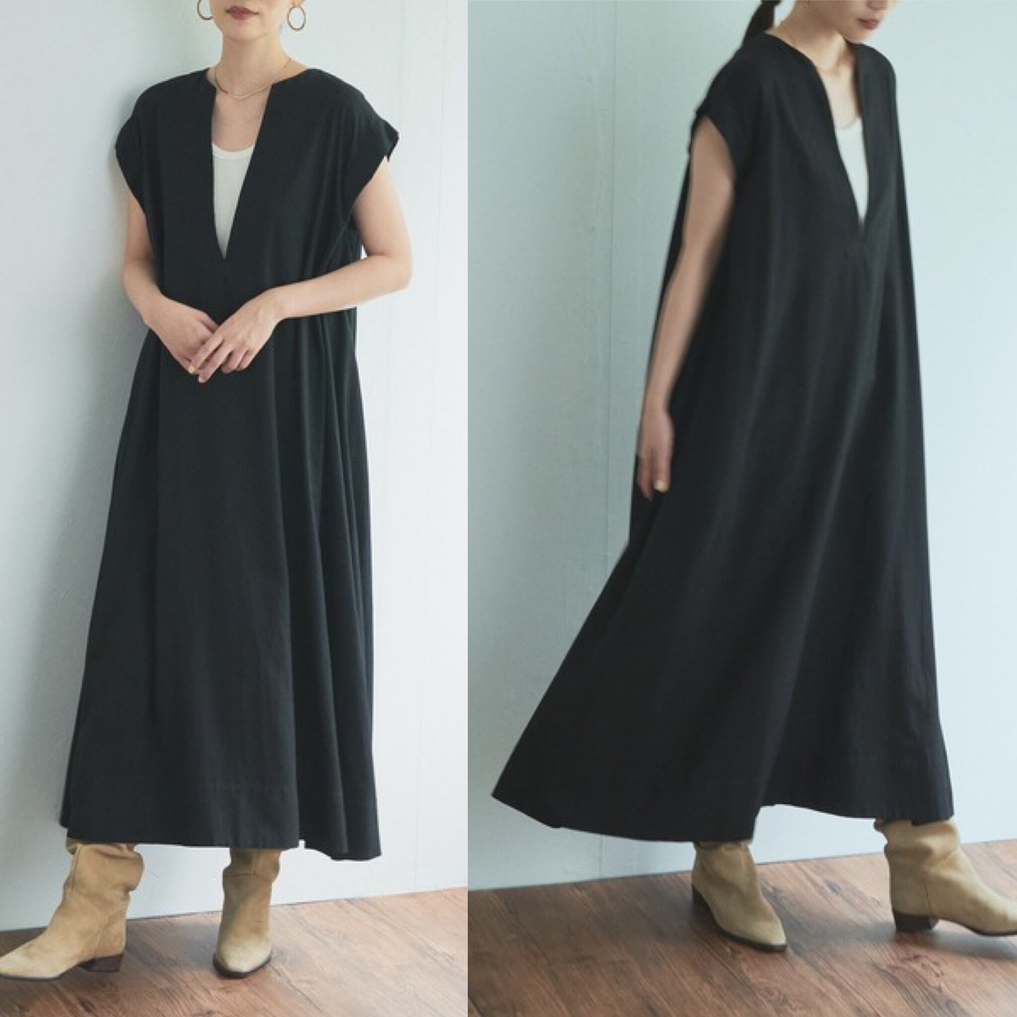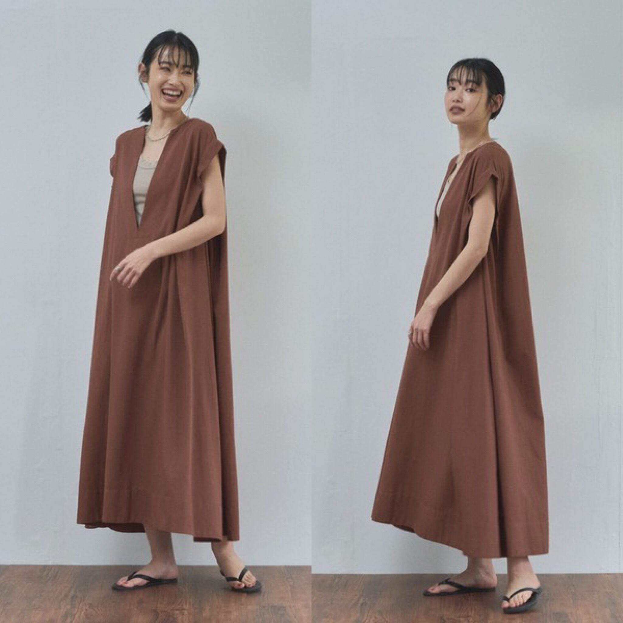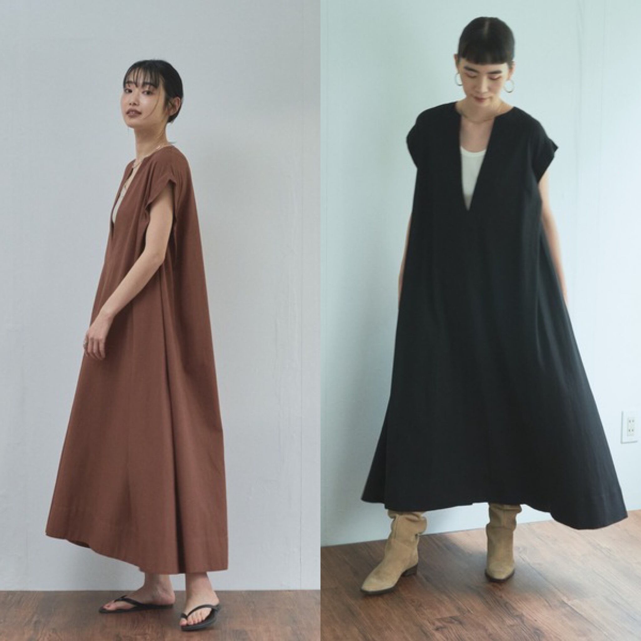 中目黒発の人気ブランドAudrey and Jhon Wadから、深いVネックのフレア マキシ ワンピースが。
