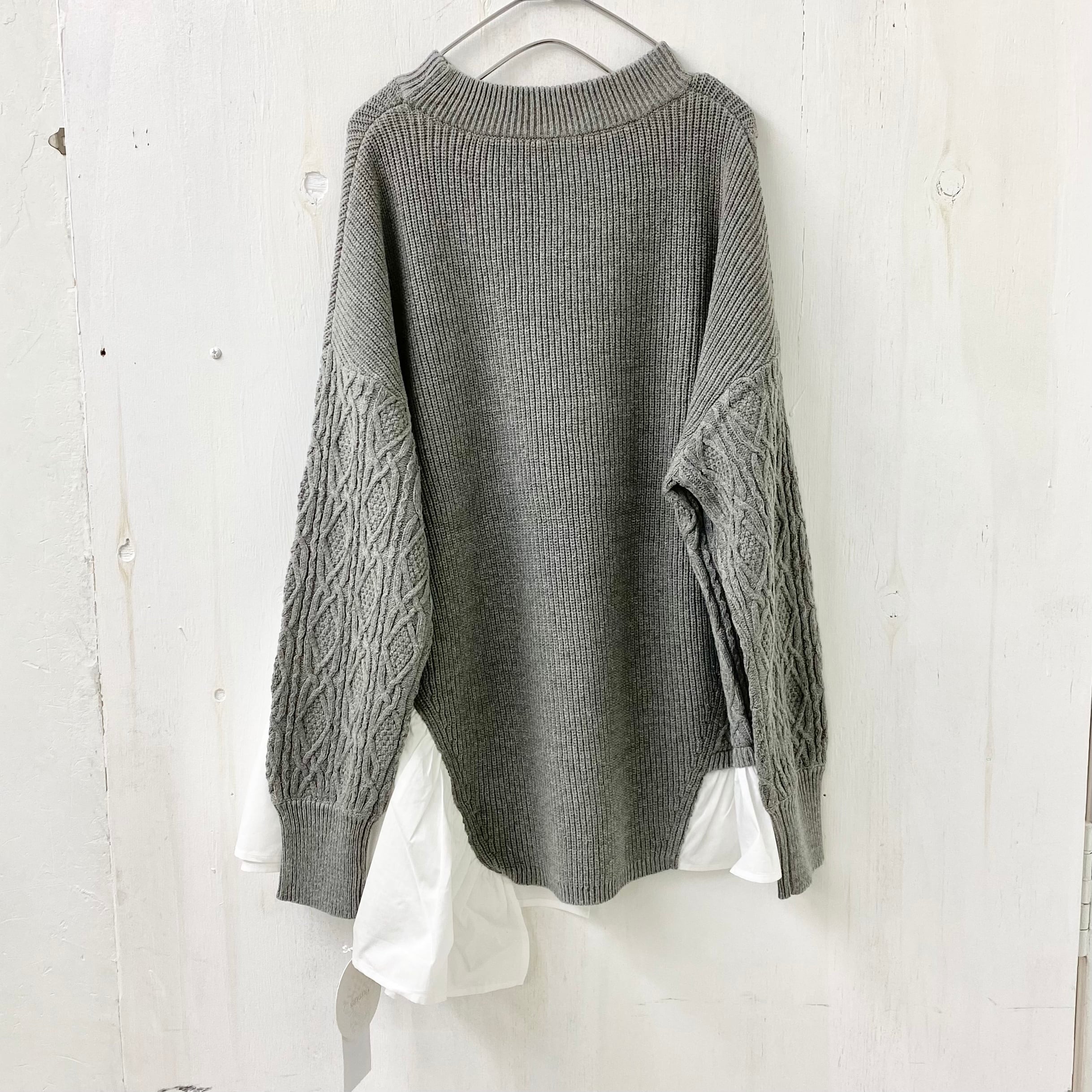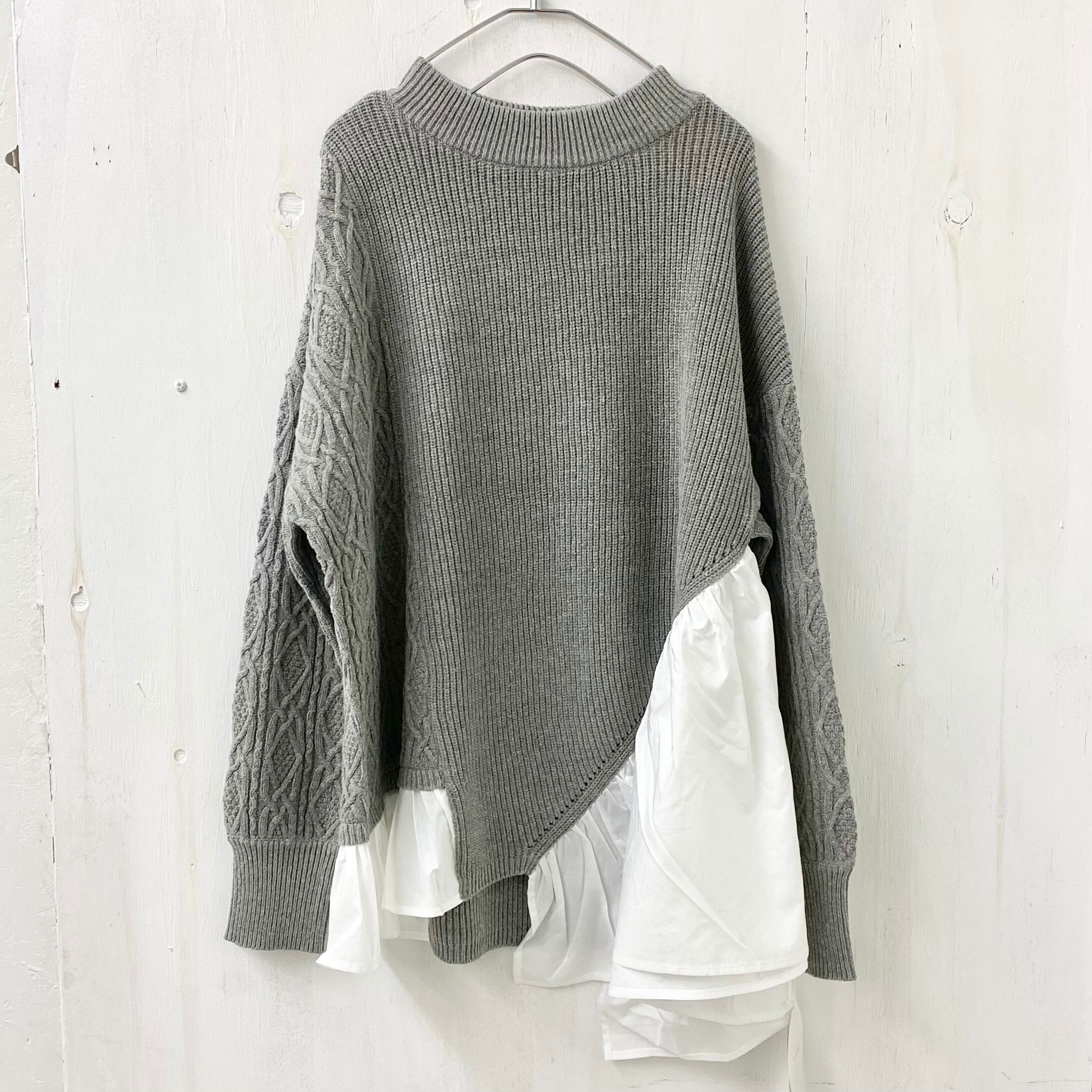 こちらは質感の良い畔編みのコットンニットにアシンメトリーにブラウスをドッキング。