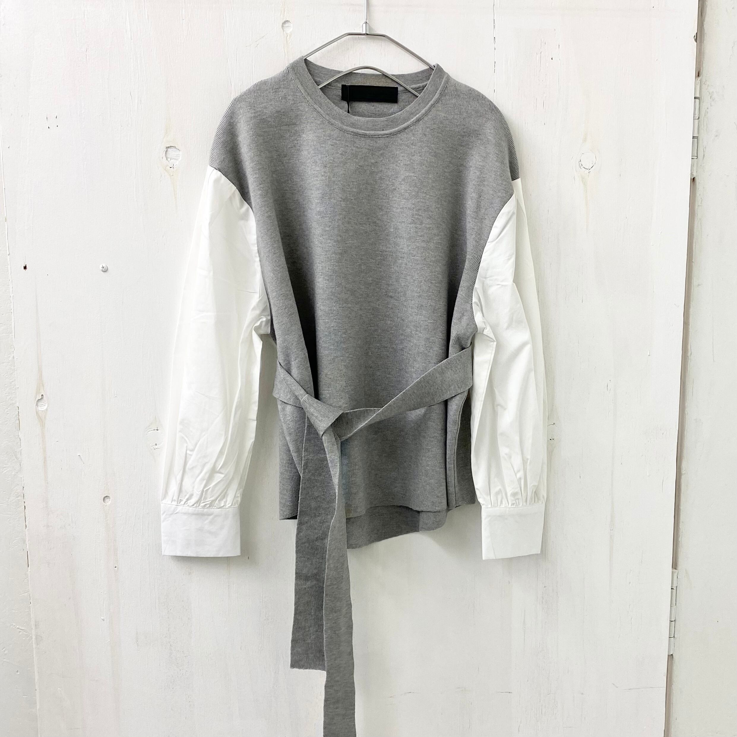 【micalle micalle】ベルト付き ニット X パフ スリーブ ドッキング プルオーバー