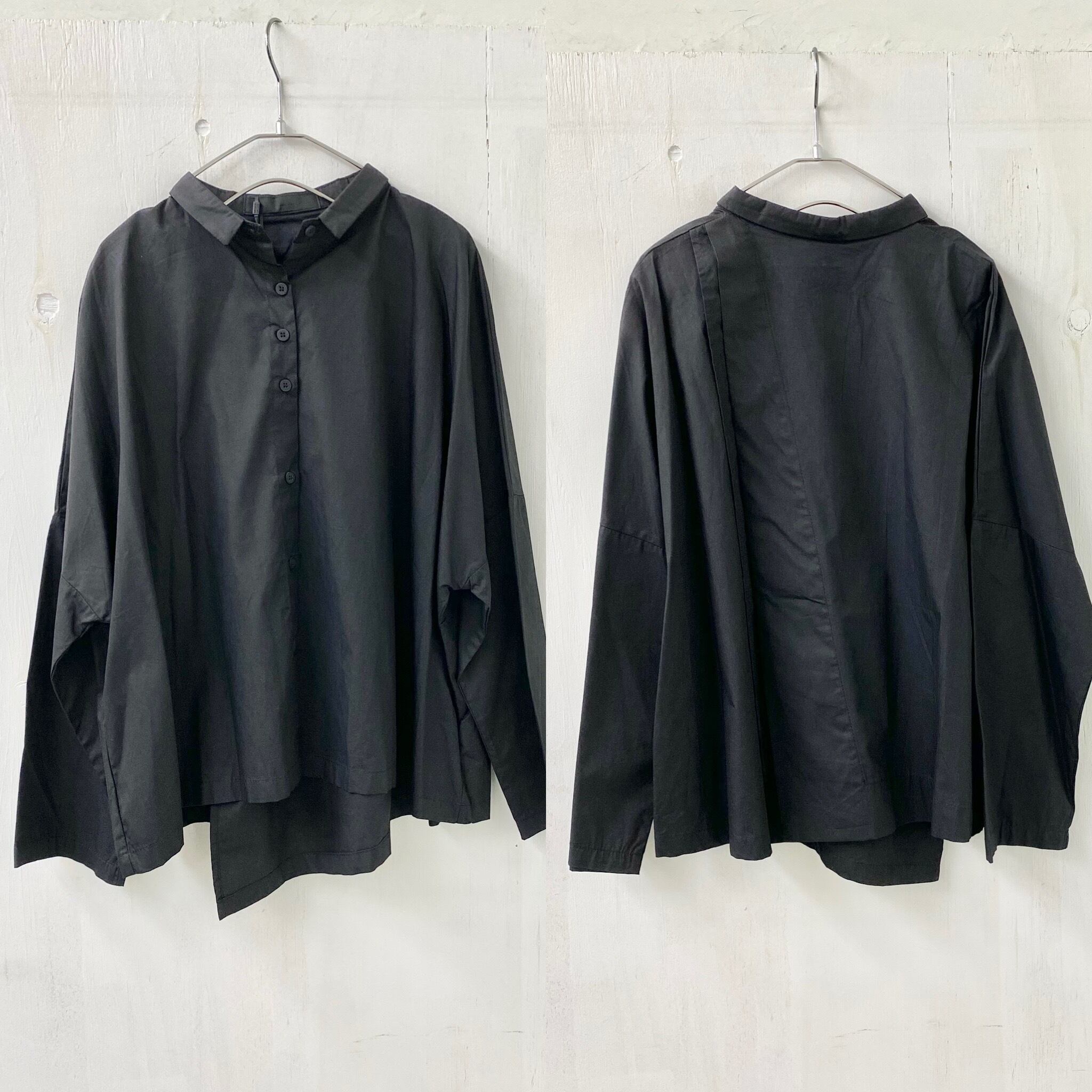 背中がひらひらと比翼デザインとなっているビッグシルエットのブラウスが。
