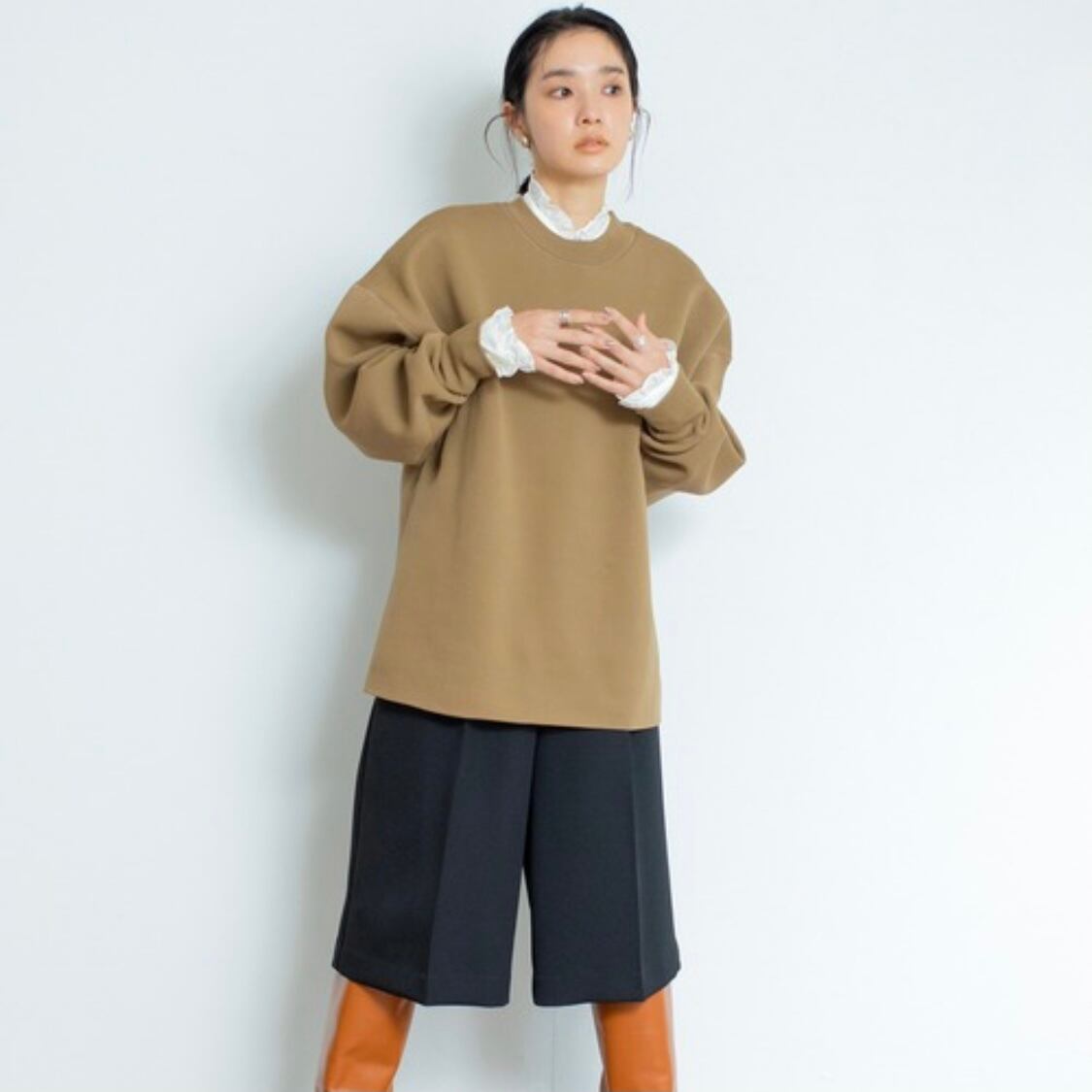 ボリューム袖が映える、軽さと着心地の良さも叶える大人のプルオーバーで、たっぷりと大胆なボリューム袖がアクセント。