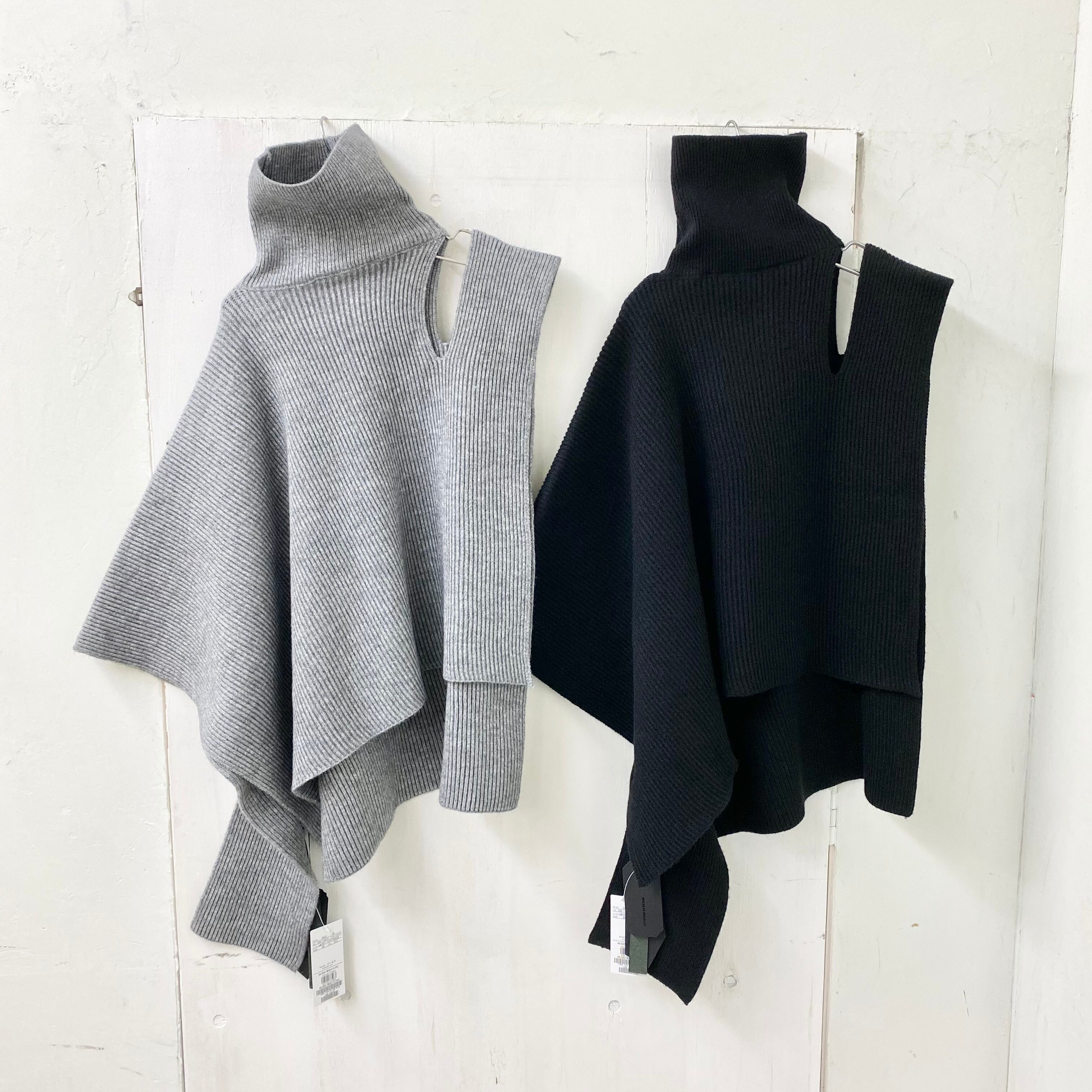 【micalle micalle】アシンメトリー ハイネック リブ ニット ケープ ポンチョ