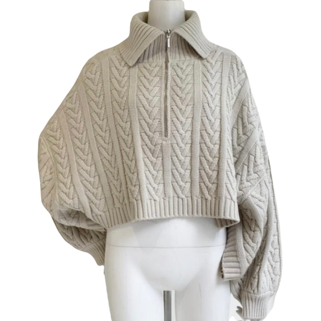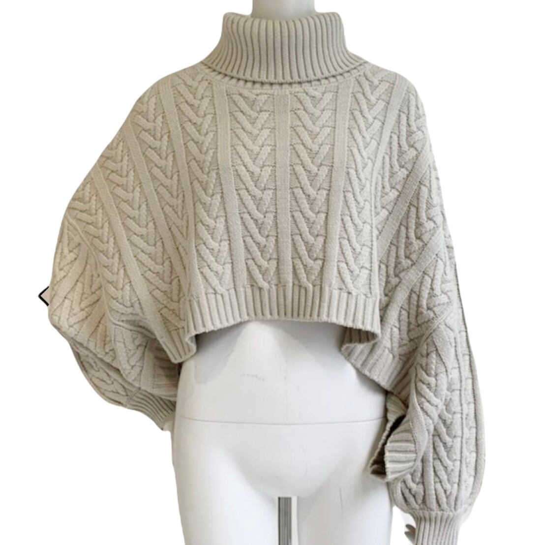 ショート丈のケーブルニット。袖のたっぷり感も可愛さ倍増のディテール。