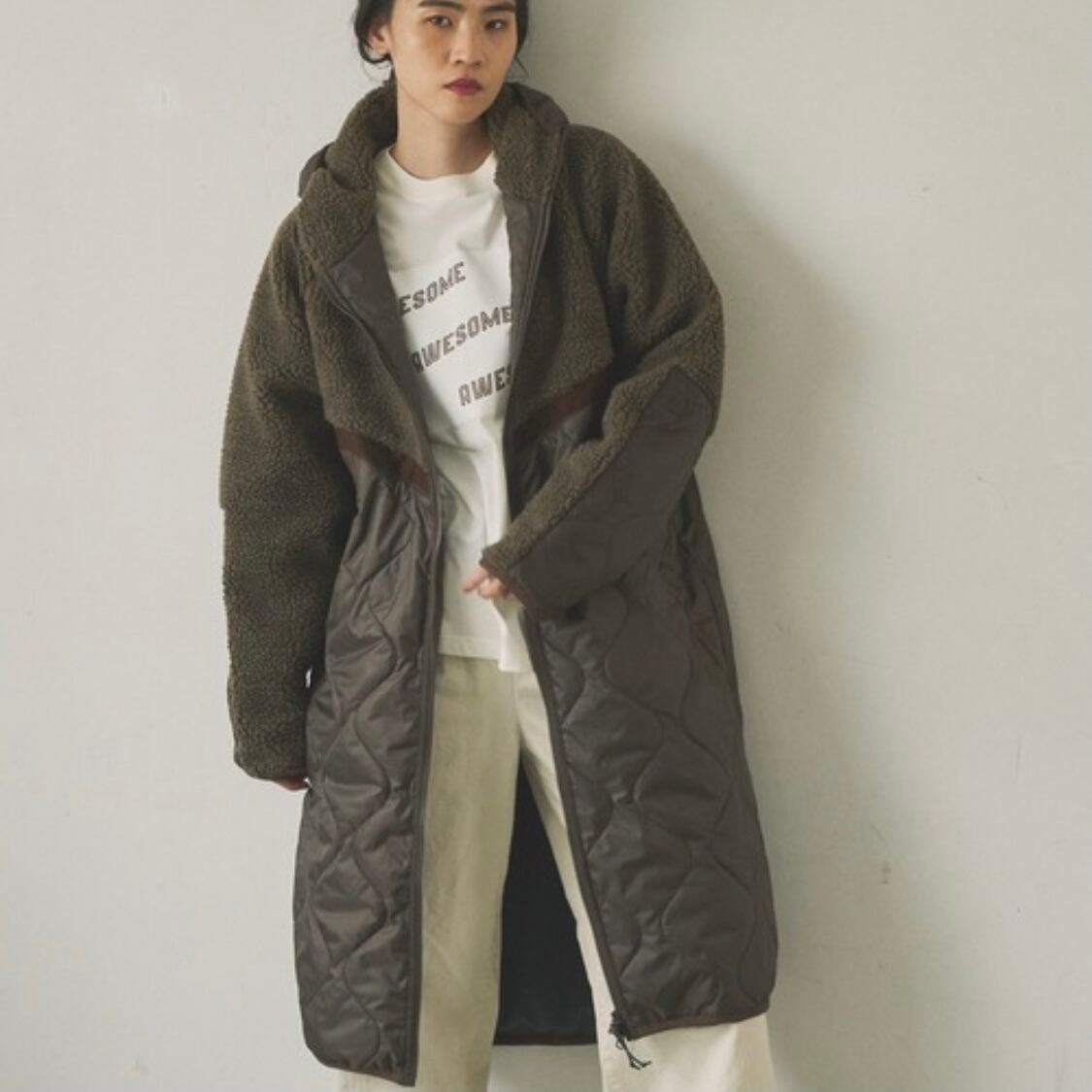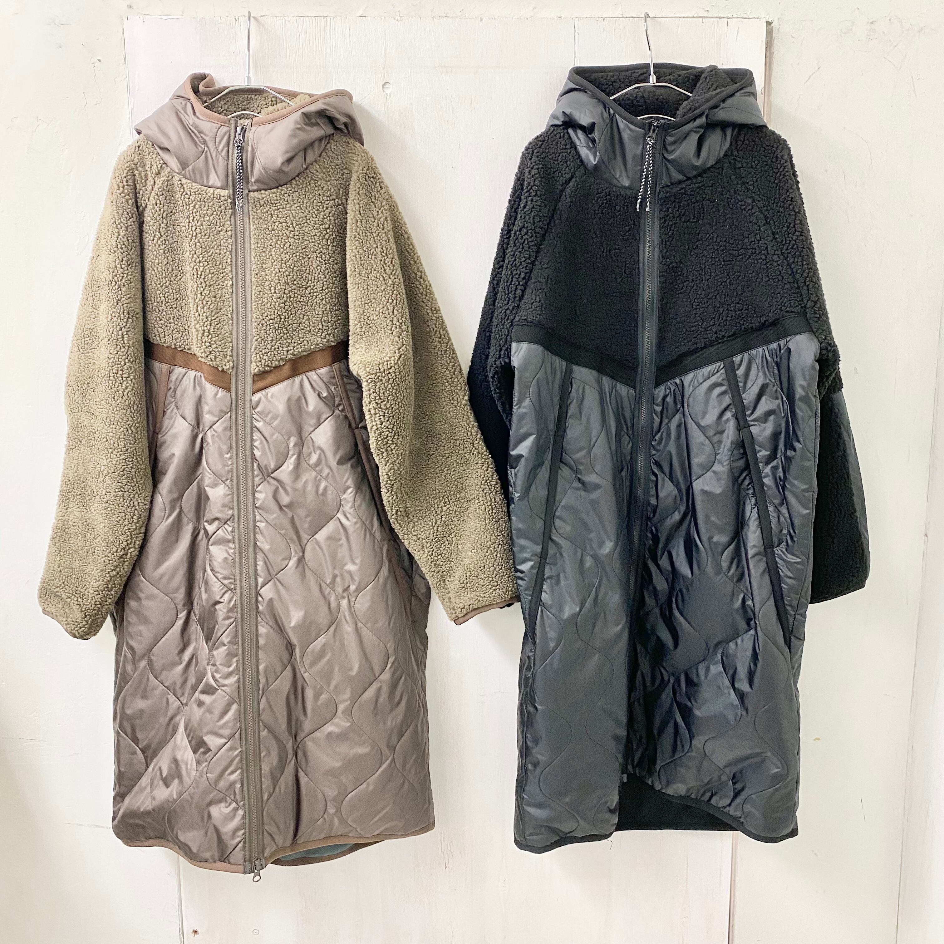 【Audrey and John Wad】ボア × 中綿 キルト フード付 ロング コート
