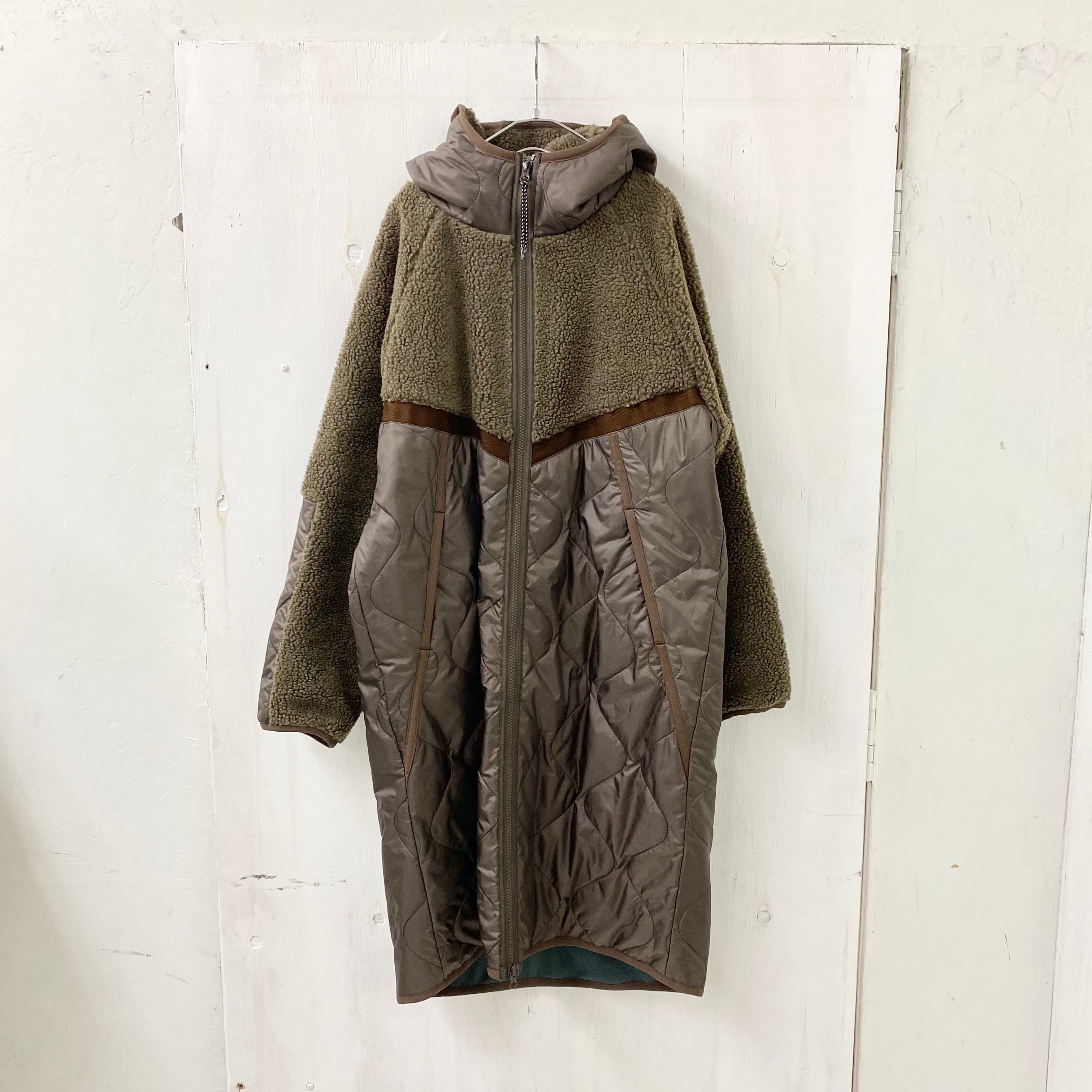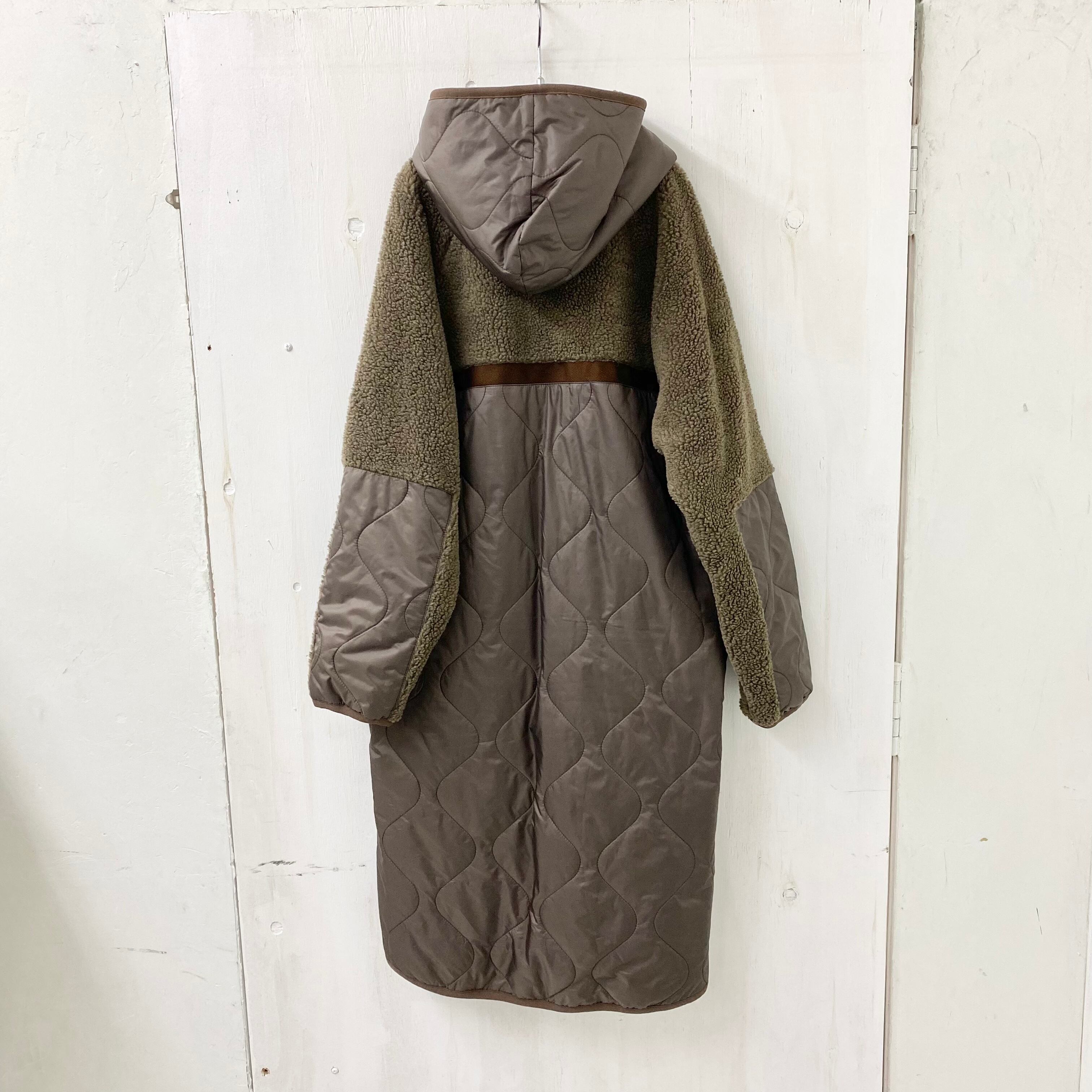 ボア × 中綿 キルト フード付 ロング コート
