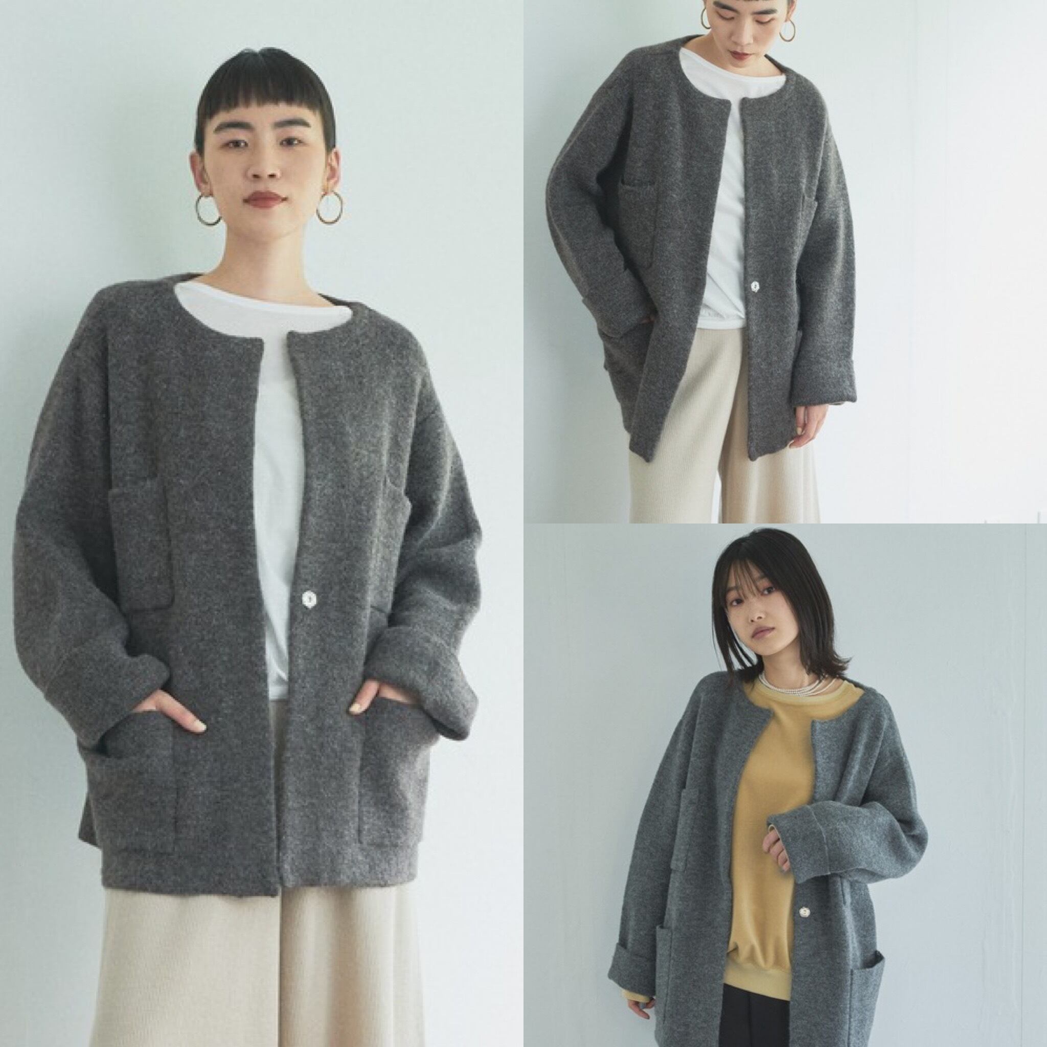 秋はコート代わりに、冬にはカーディガン代わりとして、時期によって用途を変えることが出来る便利な一枚です。