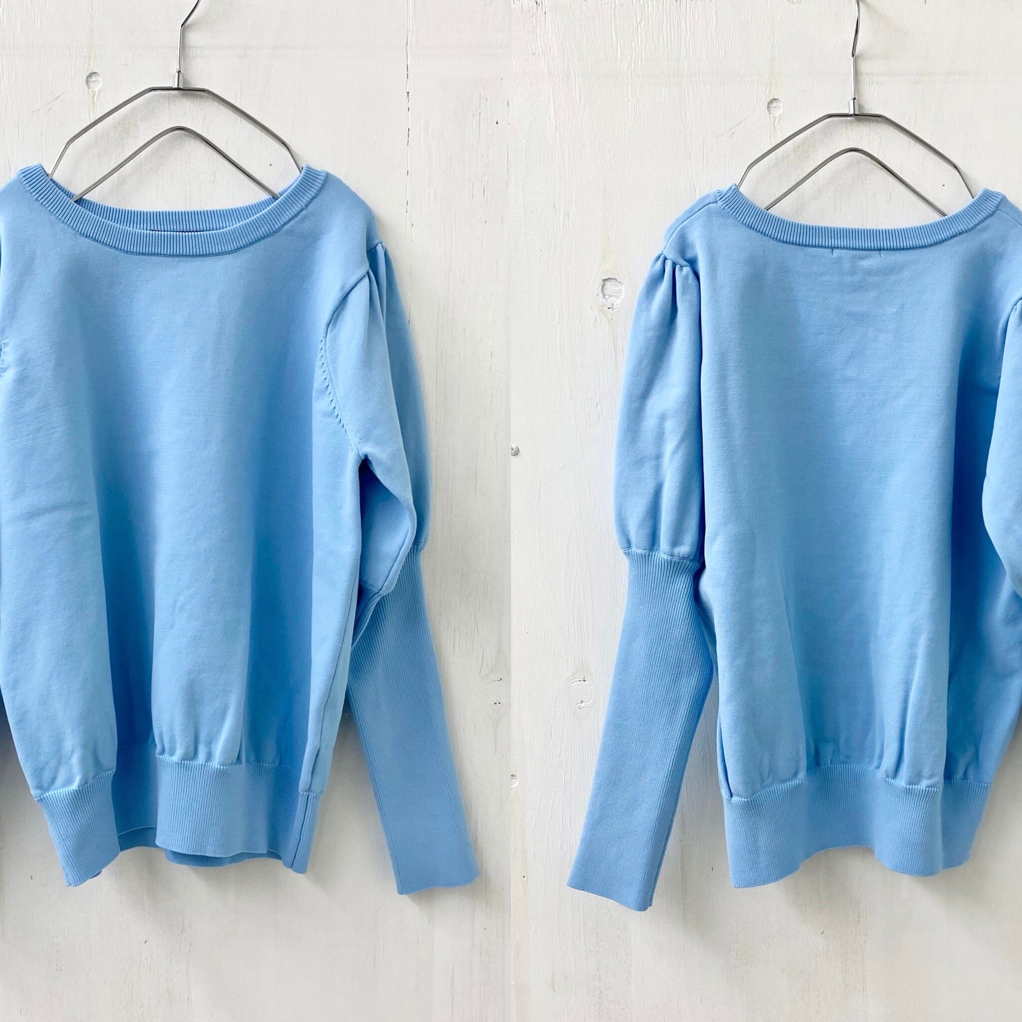 フィット感ある長リブにバルーンスリーブの強弱のついたディテールが華奢見えして