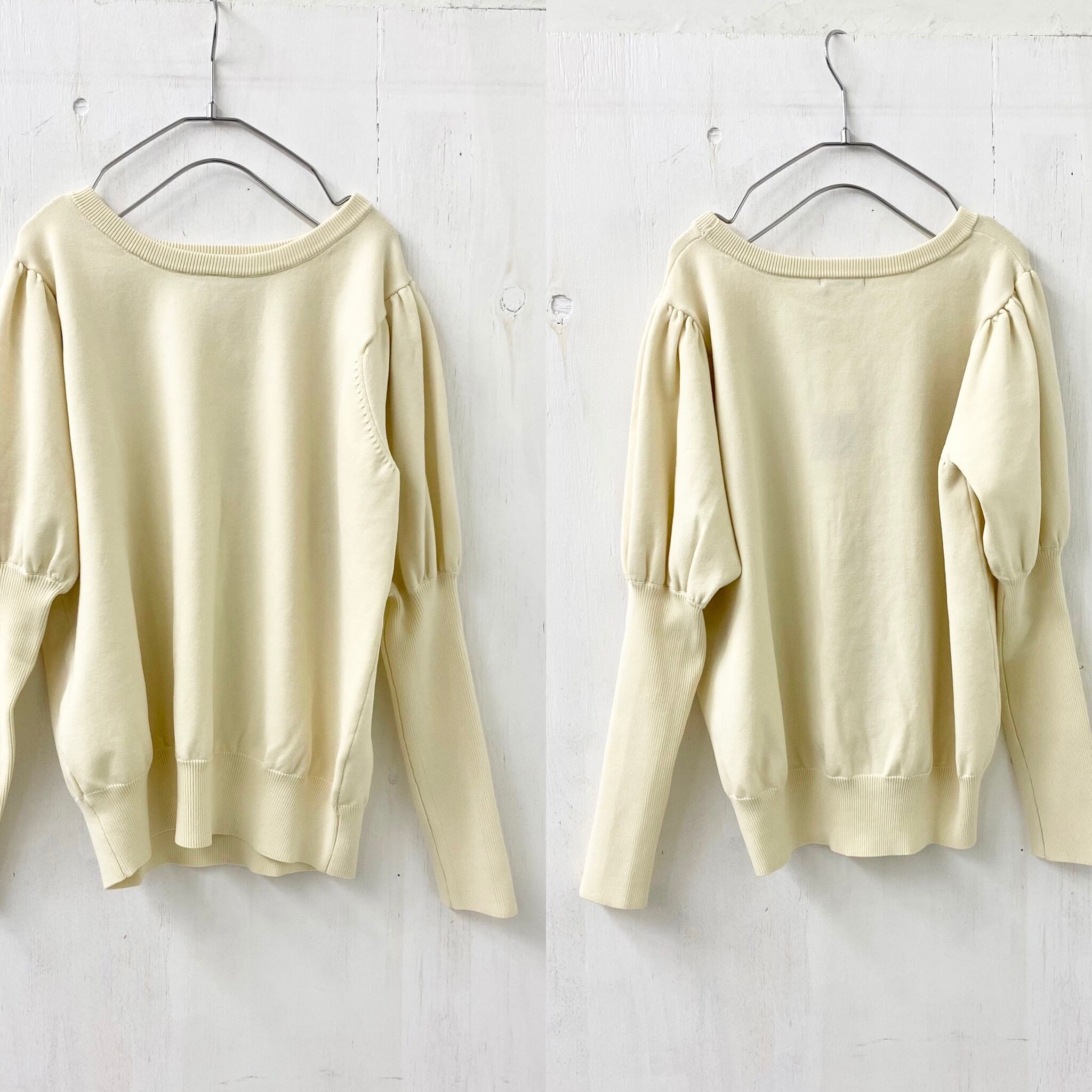 ゆるいクルーネックに袖の長リブが印象的なニット カットソー。