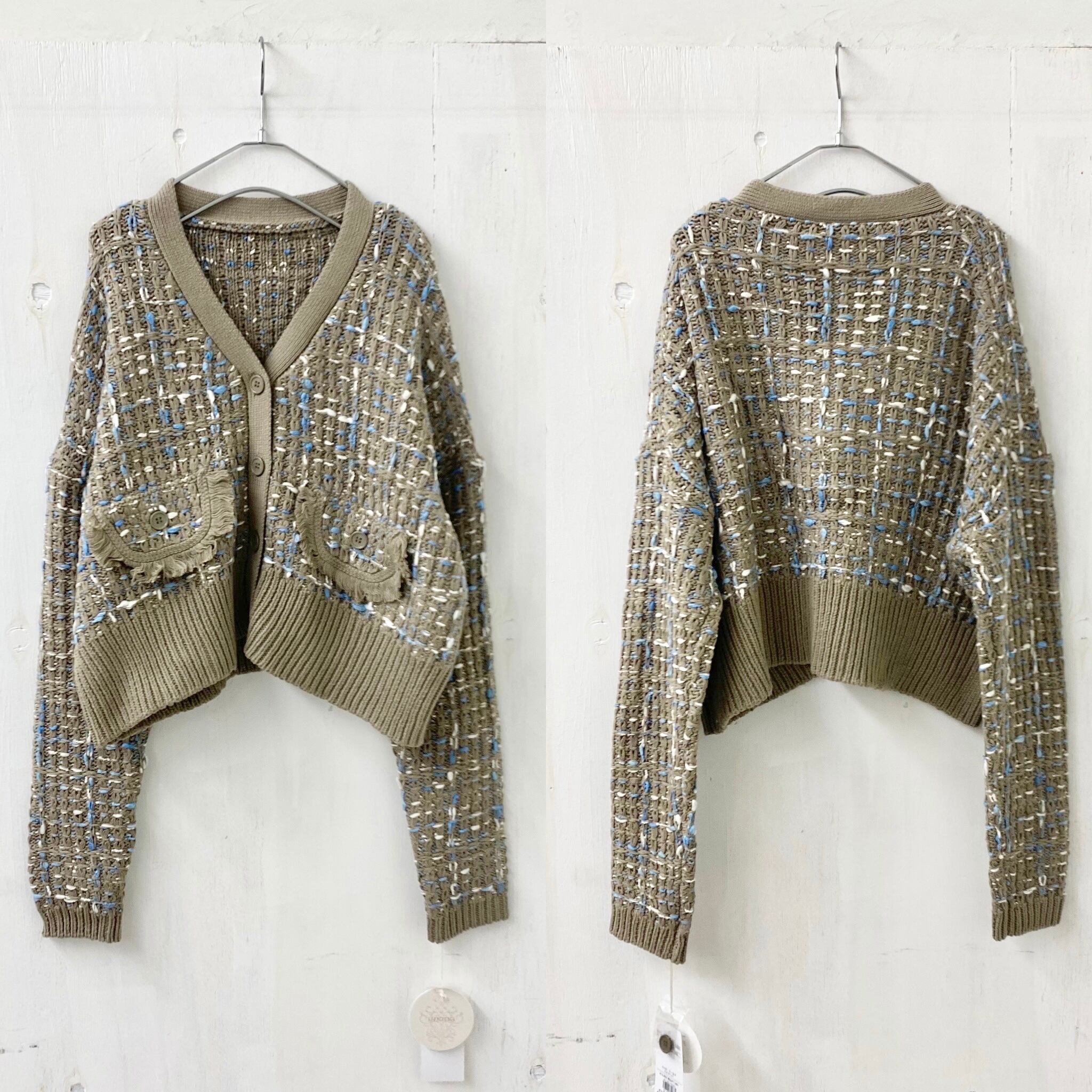 立体的でPOPなループ ヤーンを使用したMIX ツィード カーディガン。