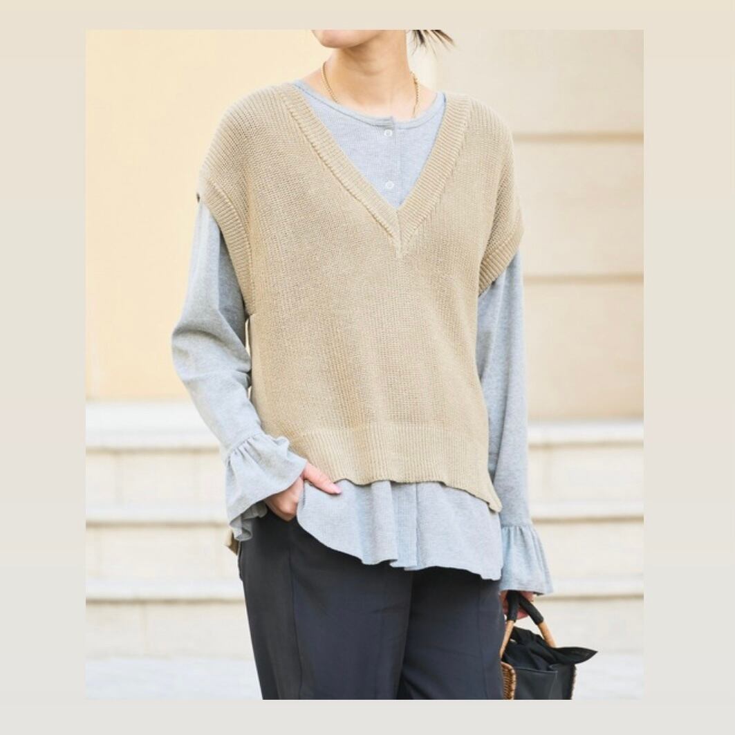 ドライ感のある風合いのニットベスト、