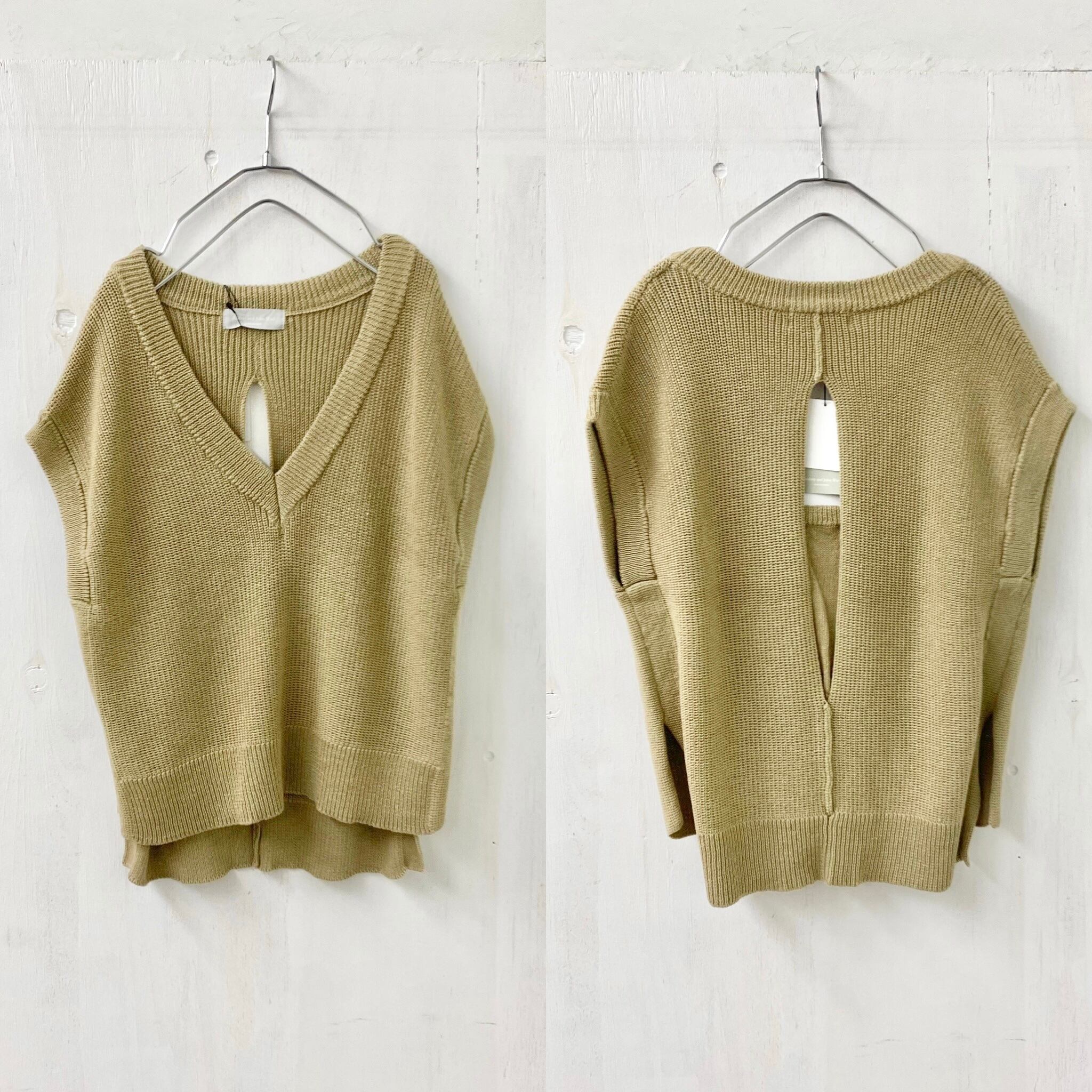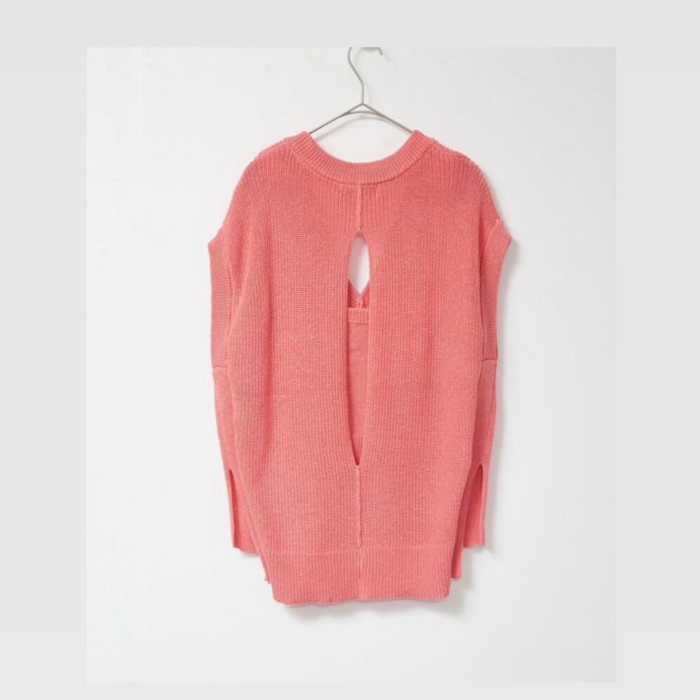 麻混 片畔 ノースリーブ ニット