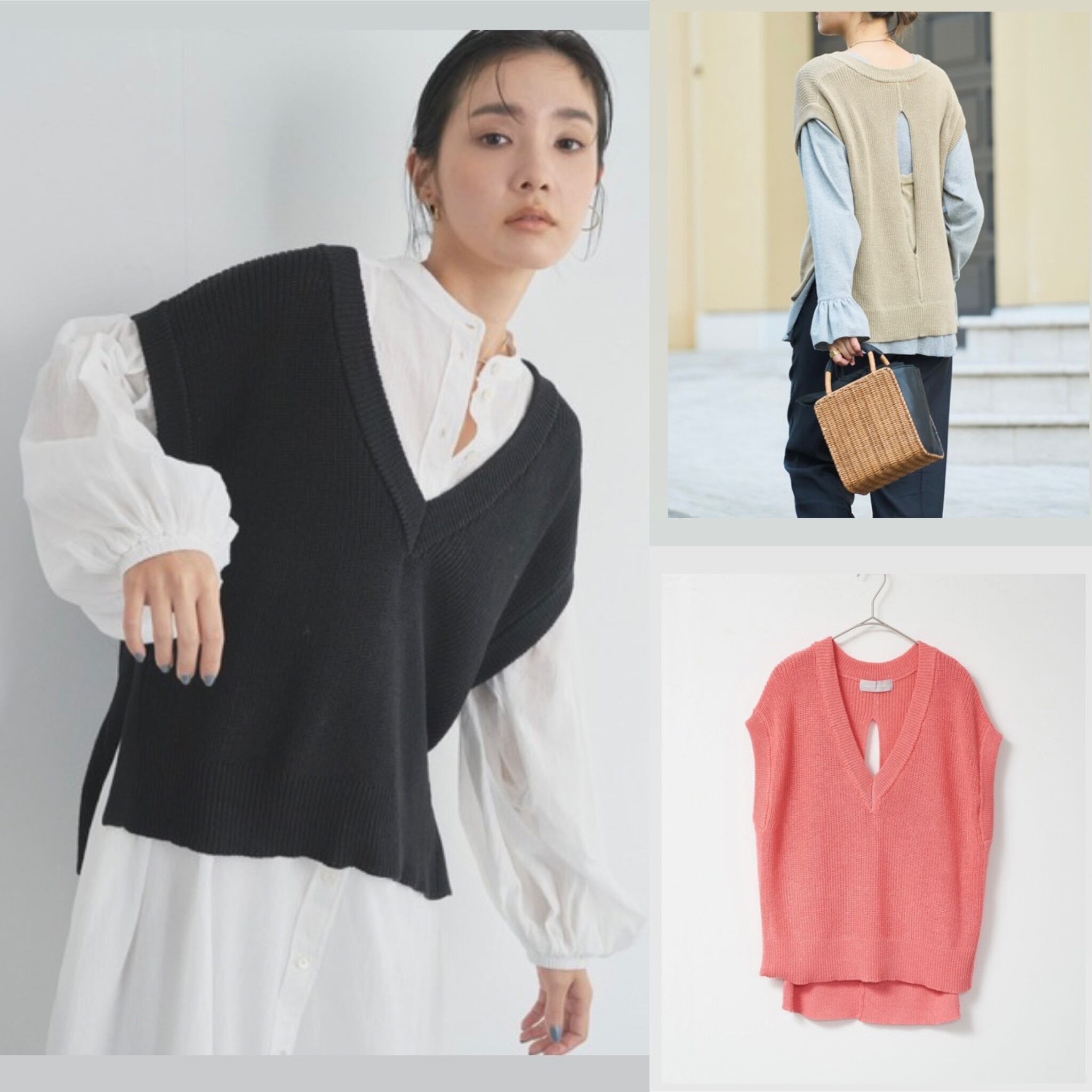 重ね着のベストとしても、夏のノースリーブトップスとしても着用可能。