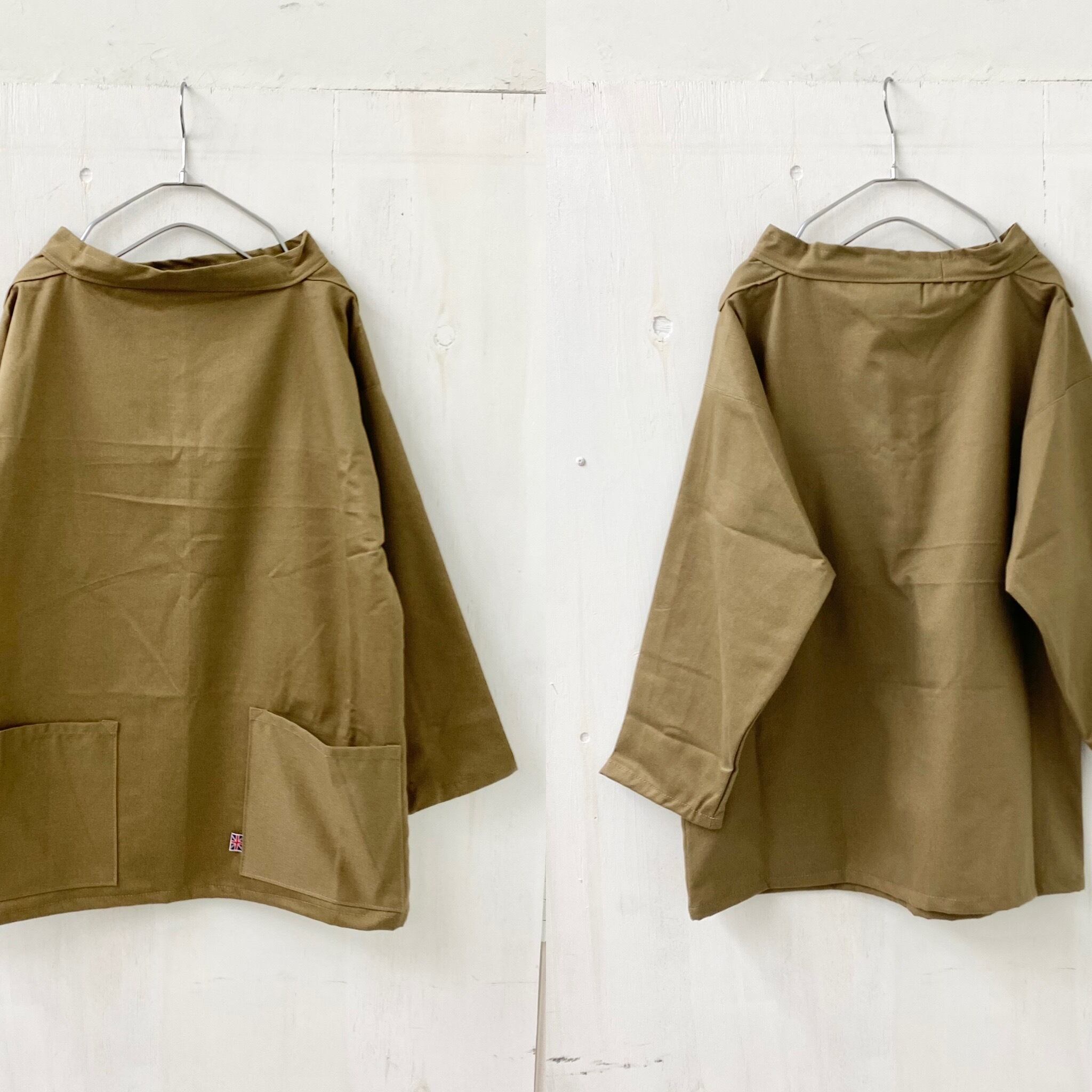 伝統的なディテールで作られたスモックは帽子を被ったままでも着れるよう襟ぐりが大きく開いてるのが特徴です。
