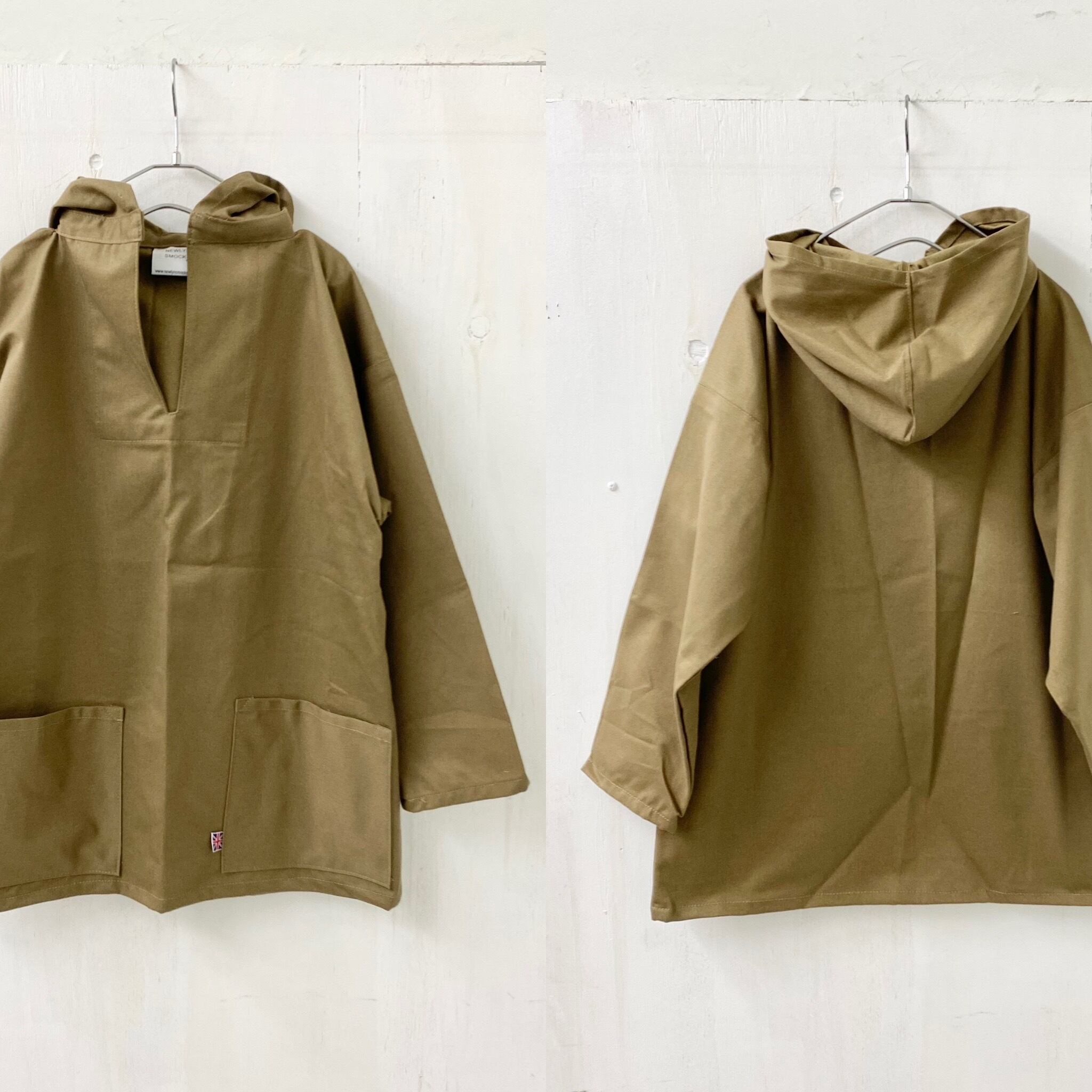 伝統的なディテールで作られたスモックは帽子を被ったままでも着れるよう襟ぐりが大きく開いてるのが特徴です。