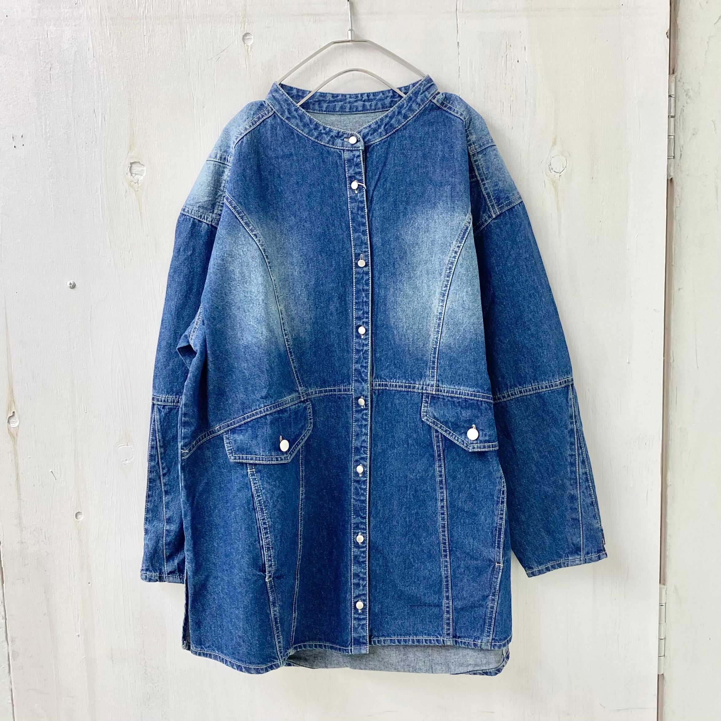 ライトオンス デニム バンドカラー 裾ラウンド シャツ ジャケット