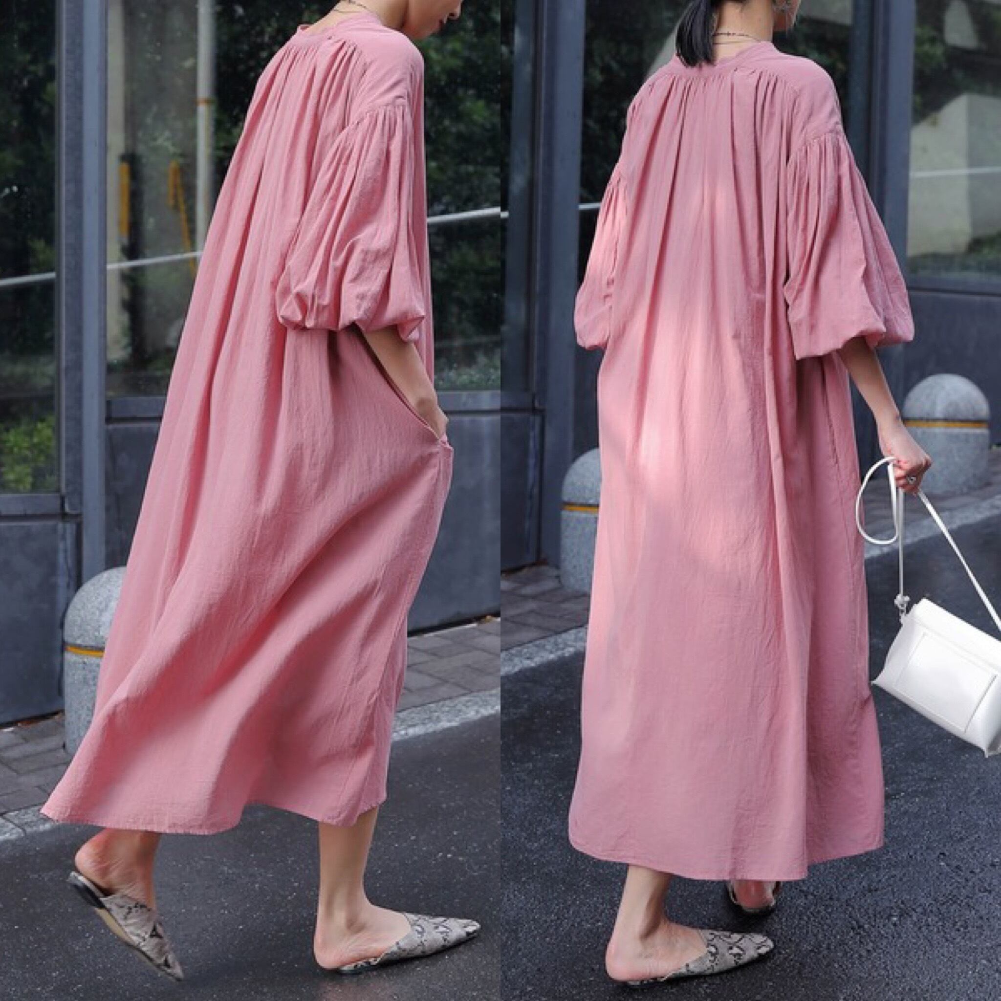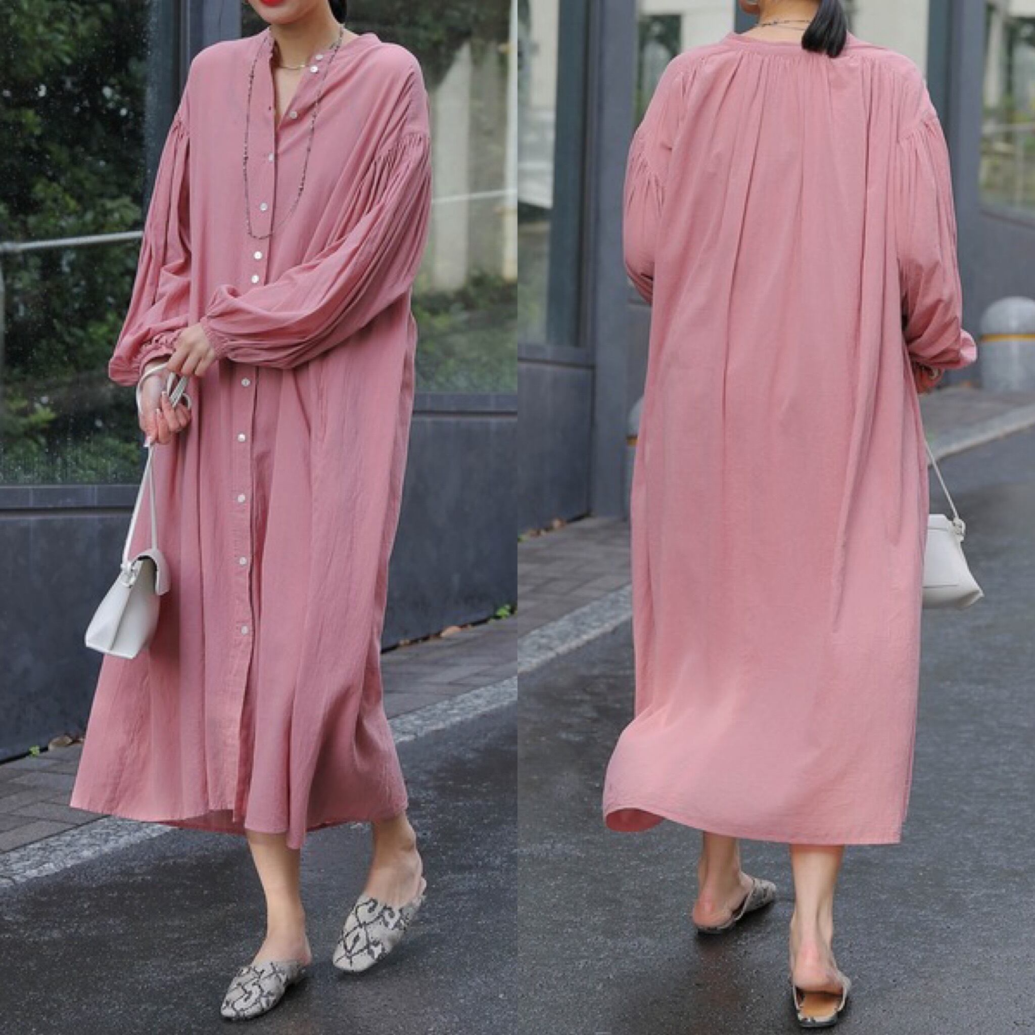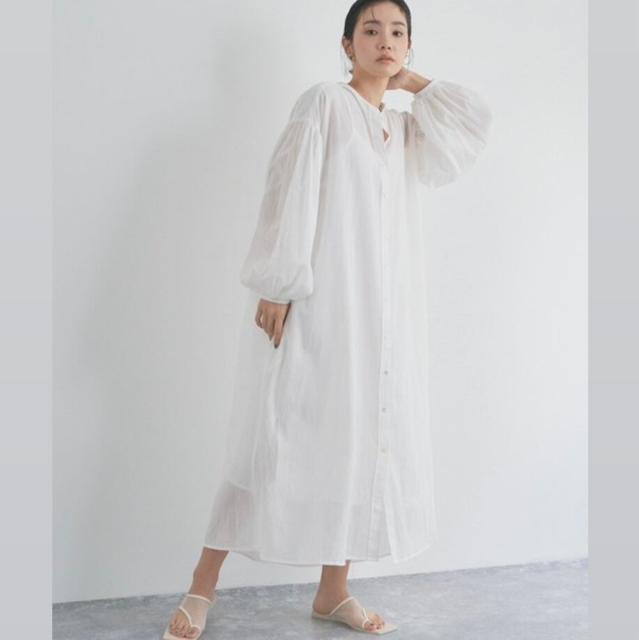 コットンボイル ボリューム袖 ギャザー ワンピース