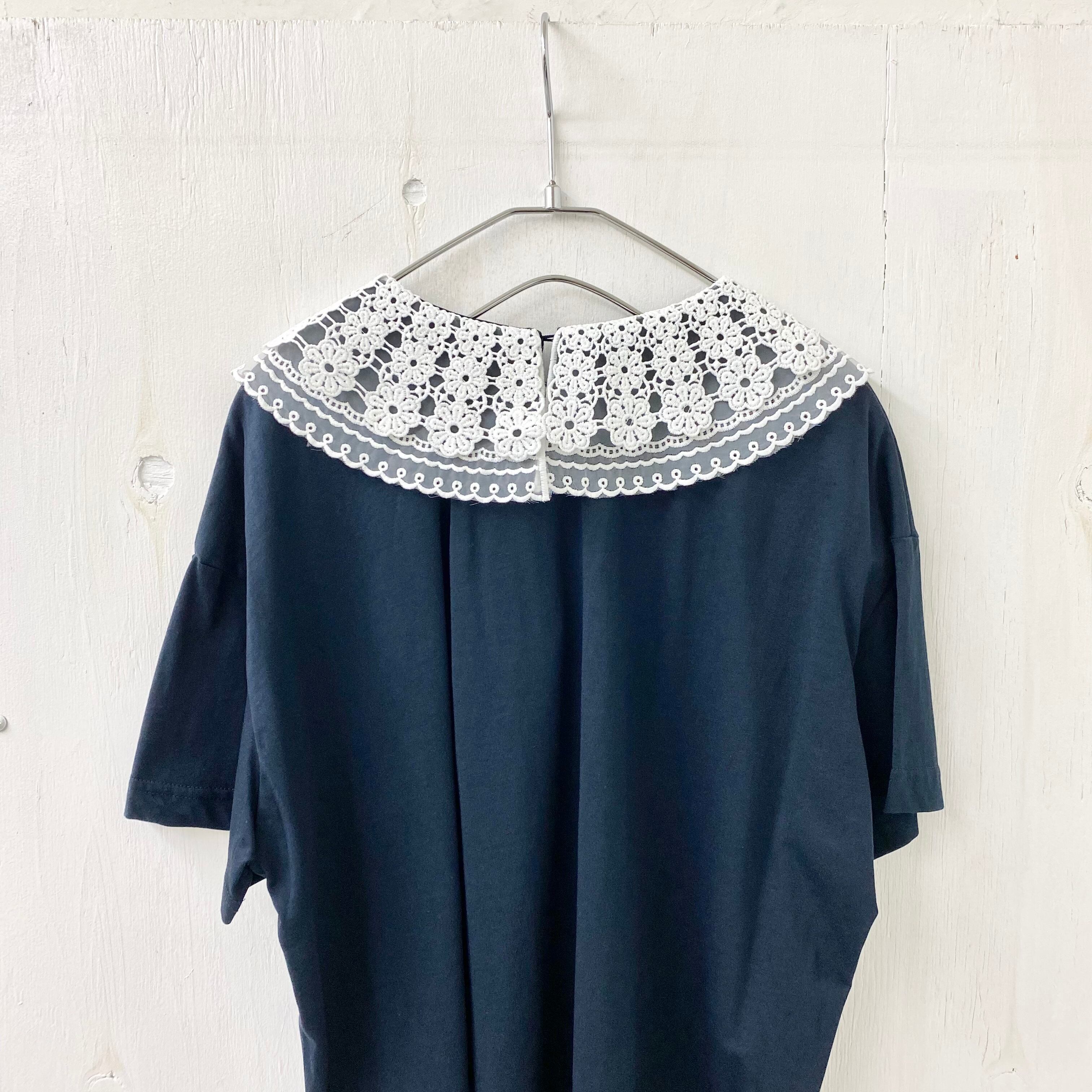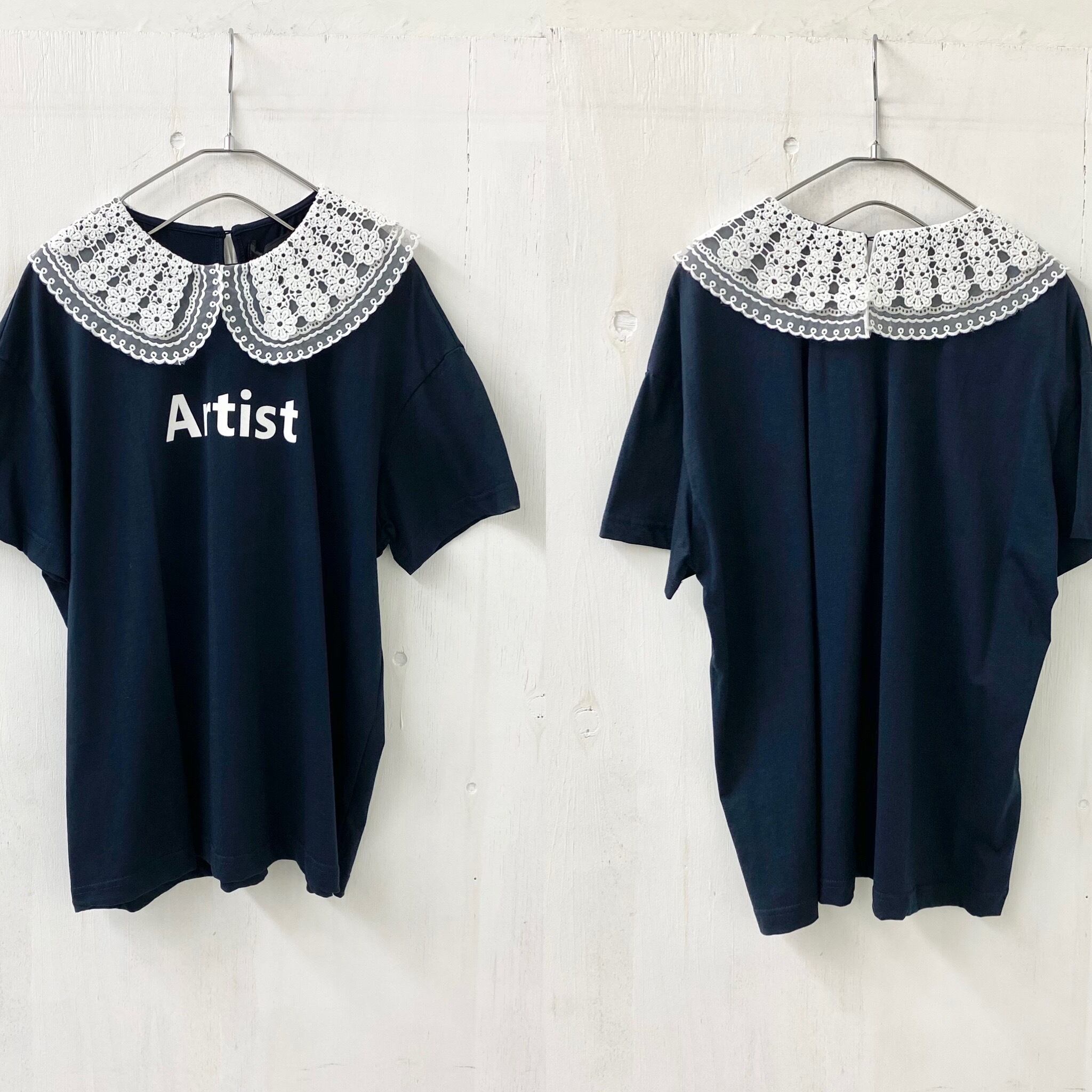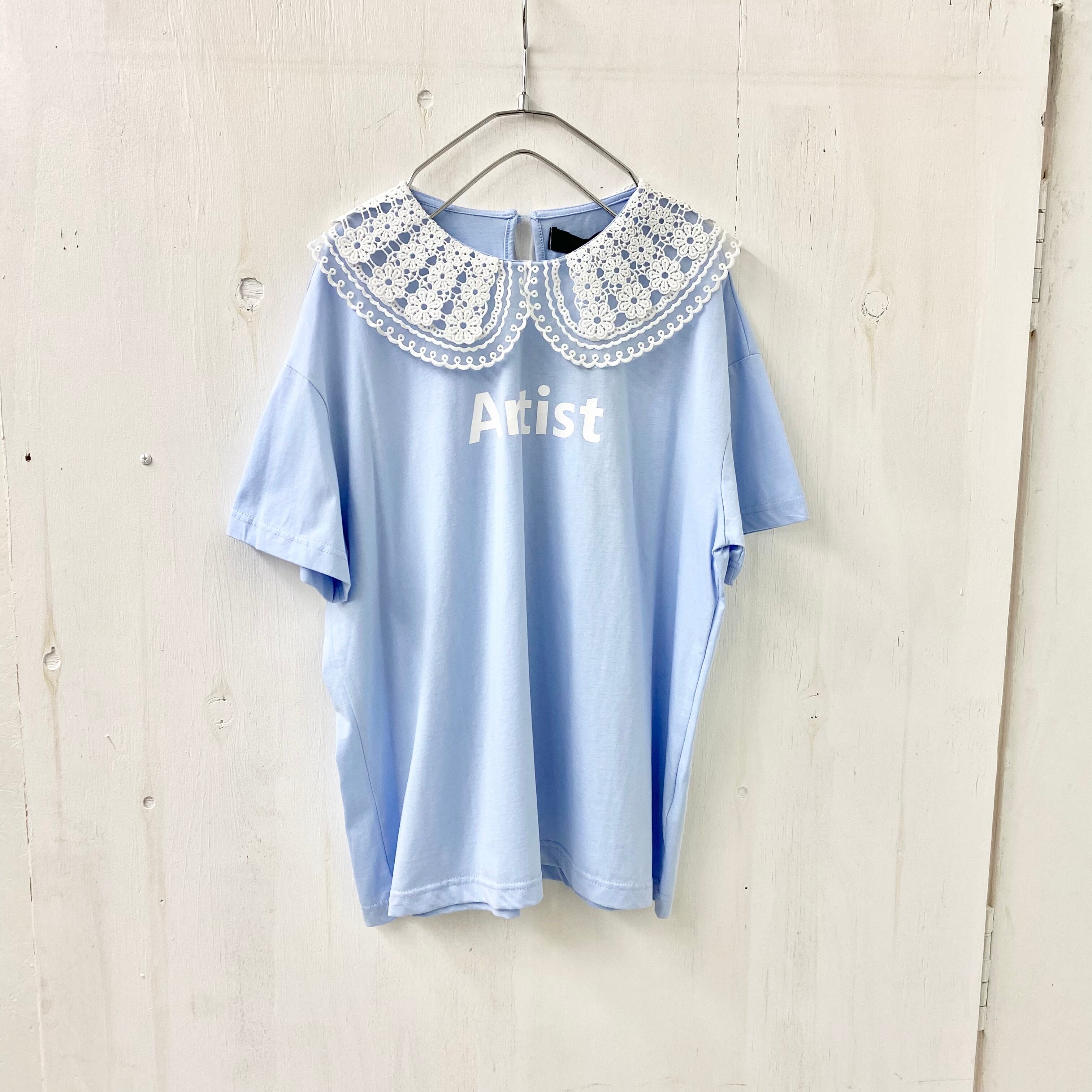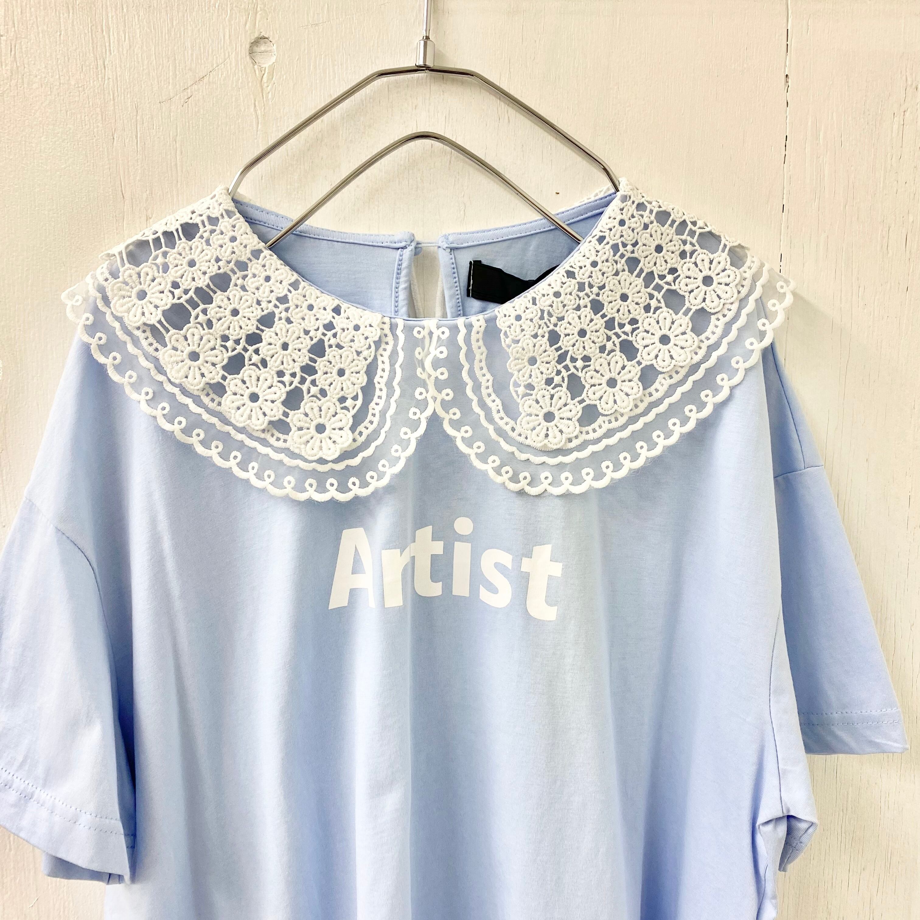 【micalle micalle】レース 丸襟 ドッキング TEE 『Artist』