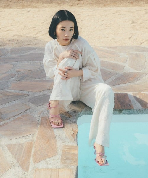 素材を活かしたシンプルデザインがリラクシーな雰囲気で、ほんのりシアー感もあるので、清涼感もありシンプルで軽い仕上がりになっています。