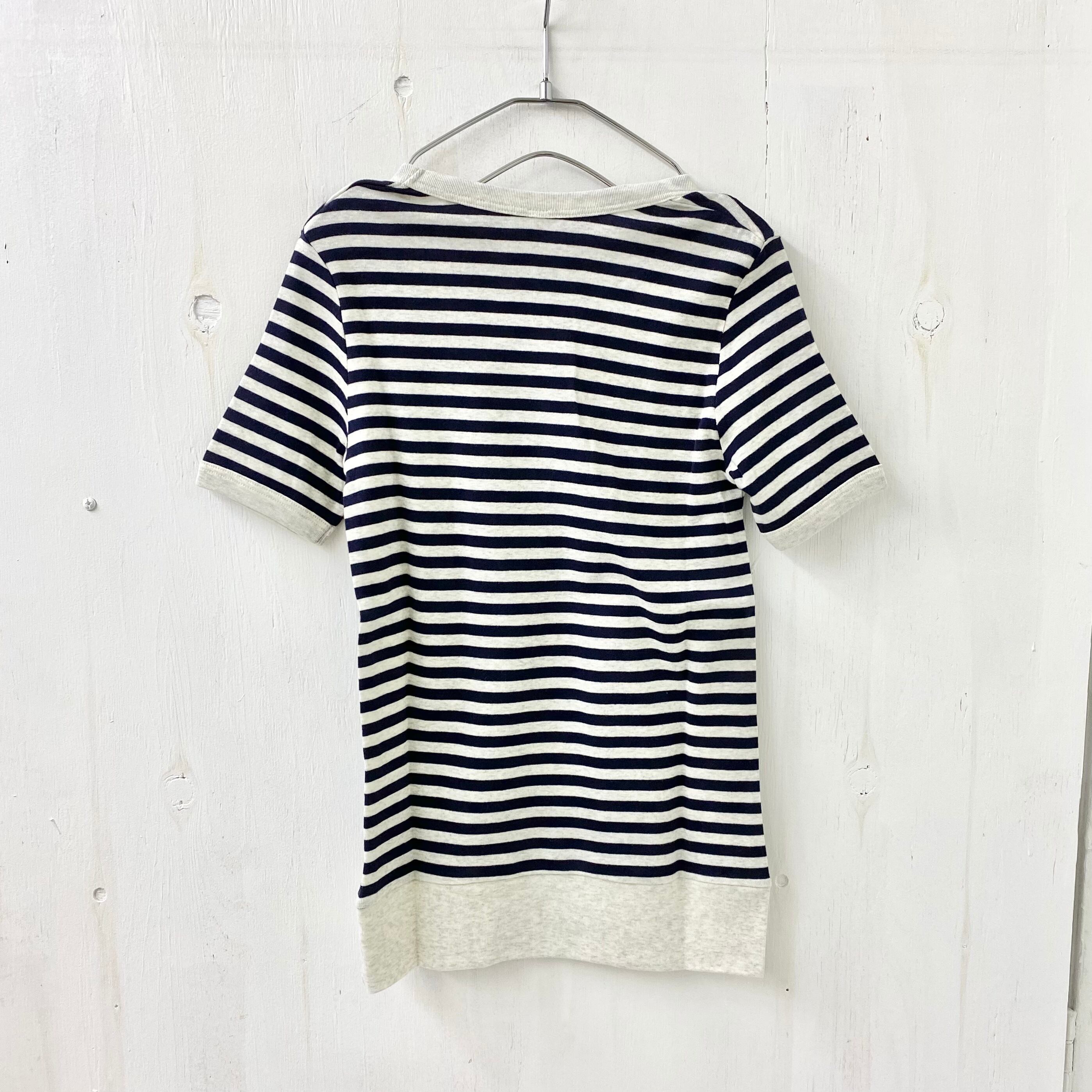 ボーダーシリーズの半袖。首と袖のバインダー始末に裾の切替が可愛い。