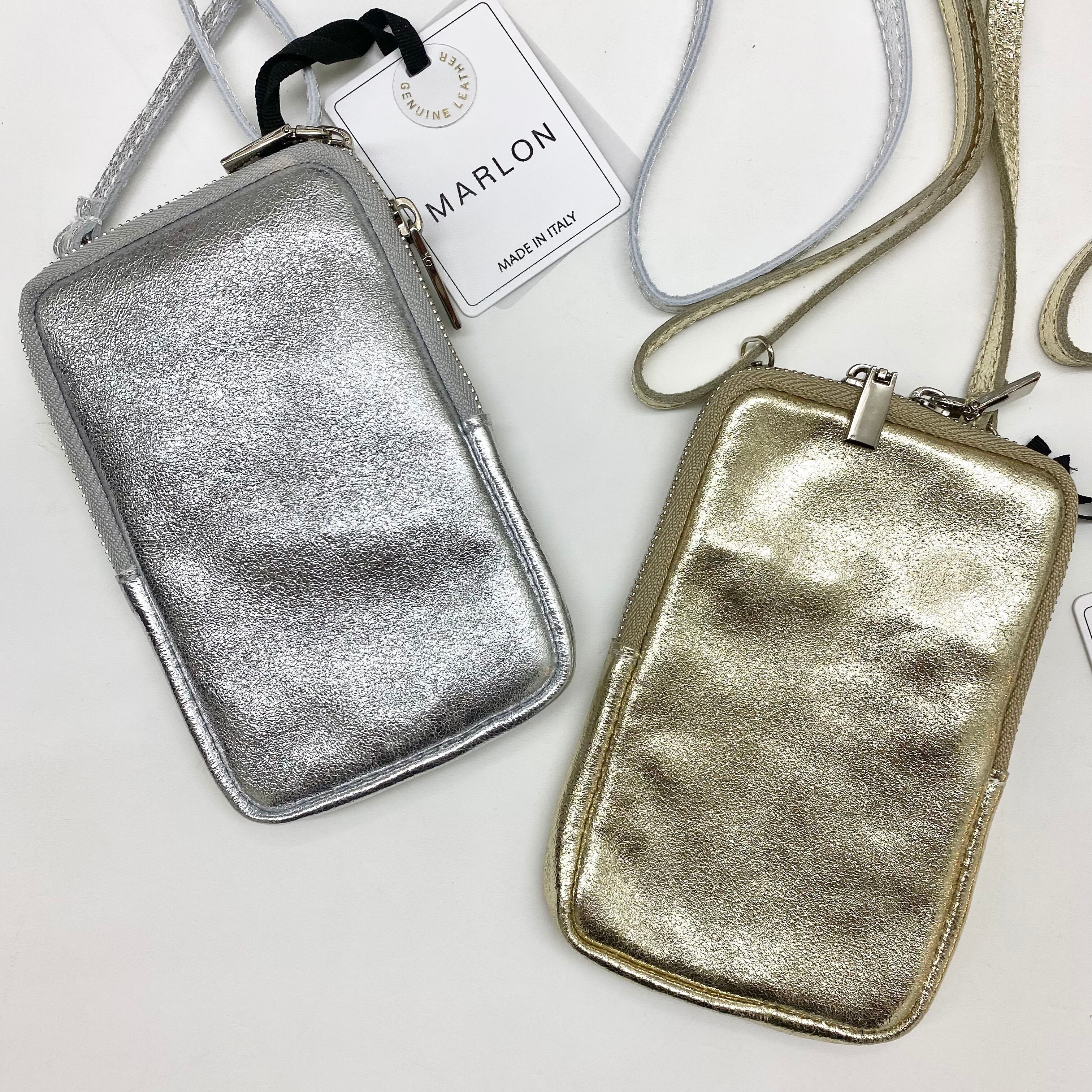 【MARLON FIRENZE /マルロン】 "PORT CELLULARE" ART CON TRACOLLA LAMINATO『ARGENTO シルバー』made in ITALY