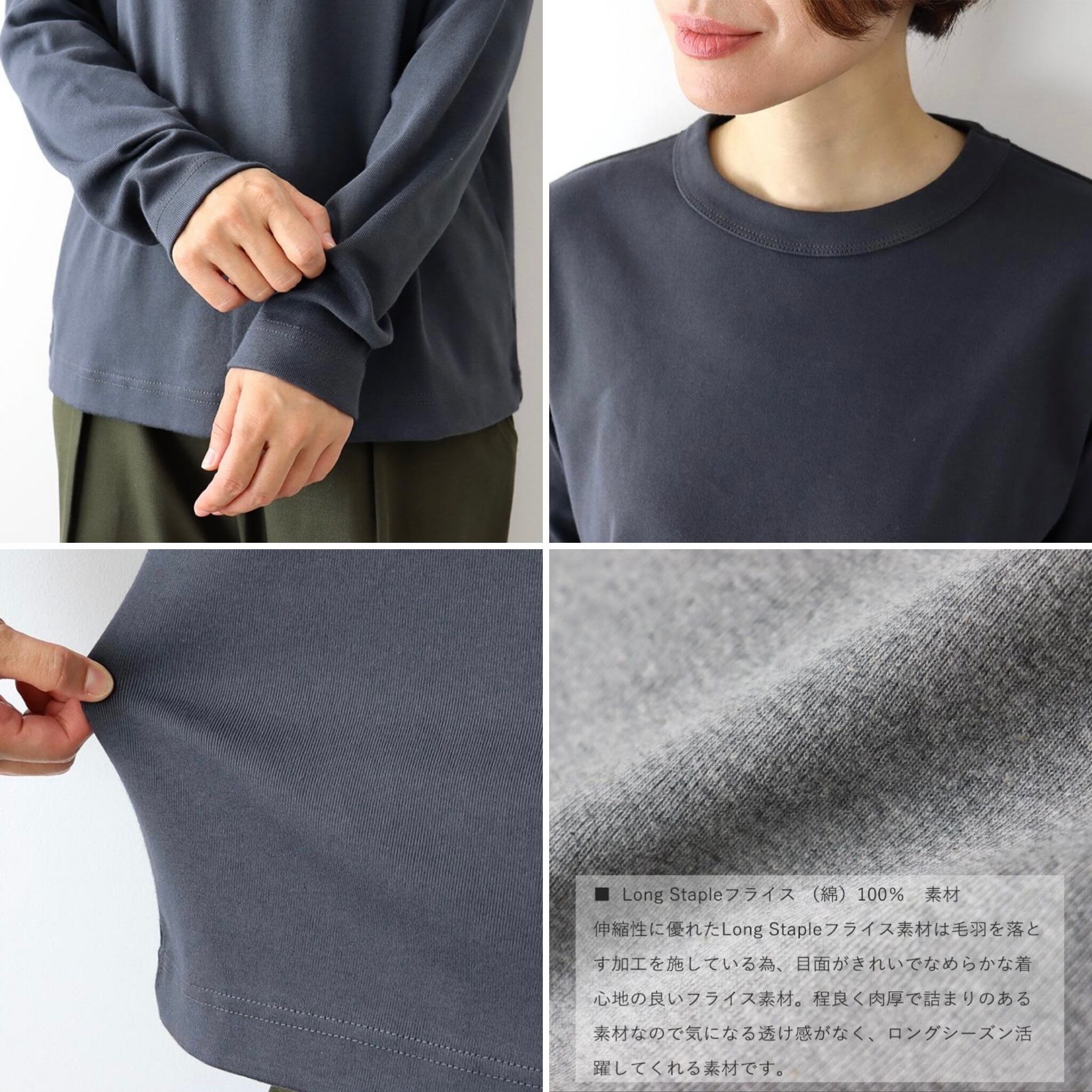 程良い肉厚で詰まりもある素材なので透け感も無くロングシーズン活躍してくれます。