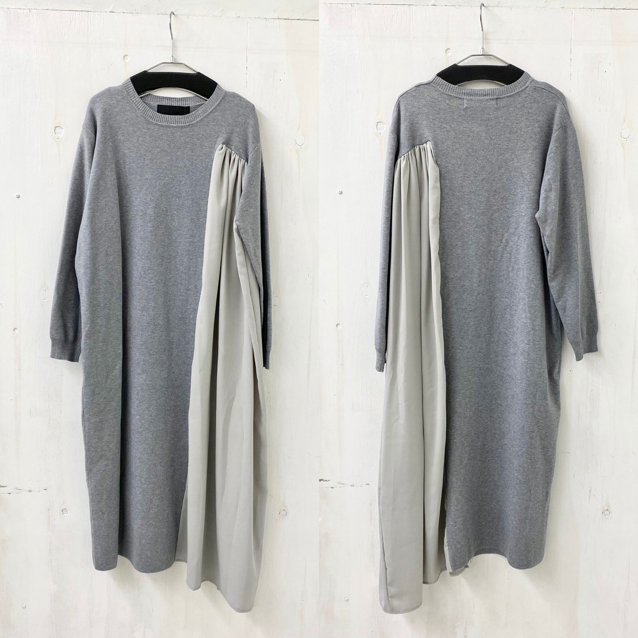 【micalle micalle】クルーネック ニット X ジョーゼット 切替 ワンピース