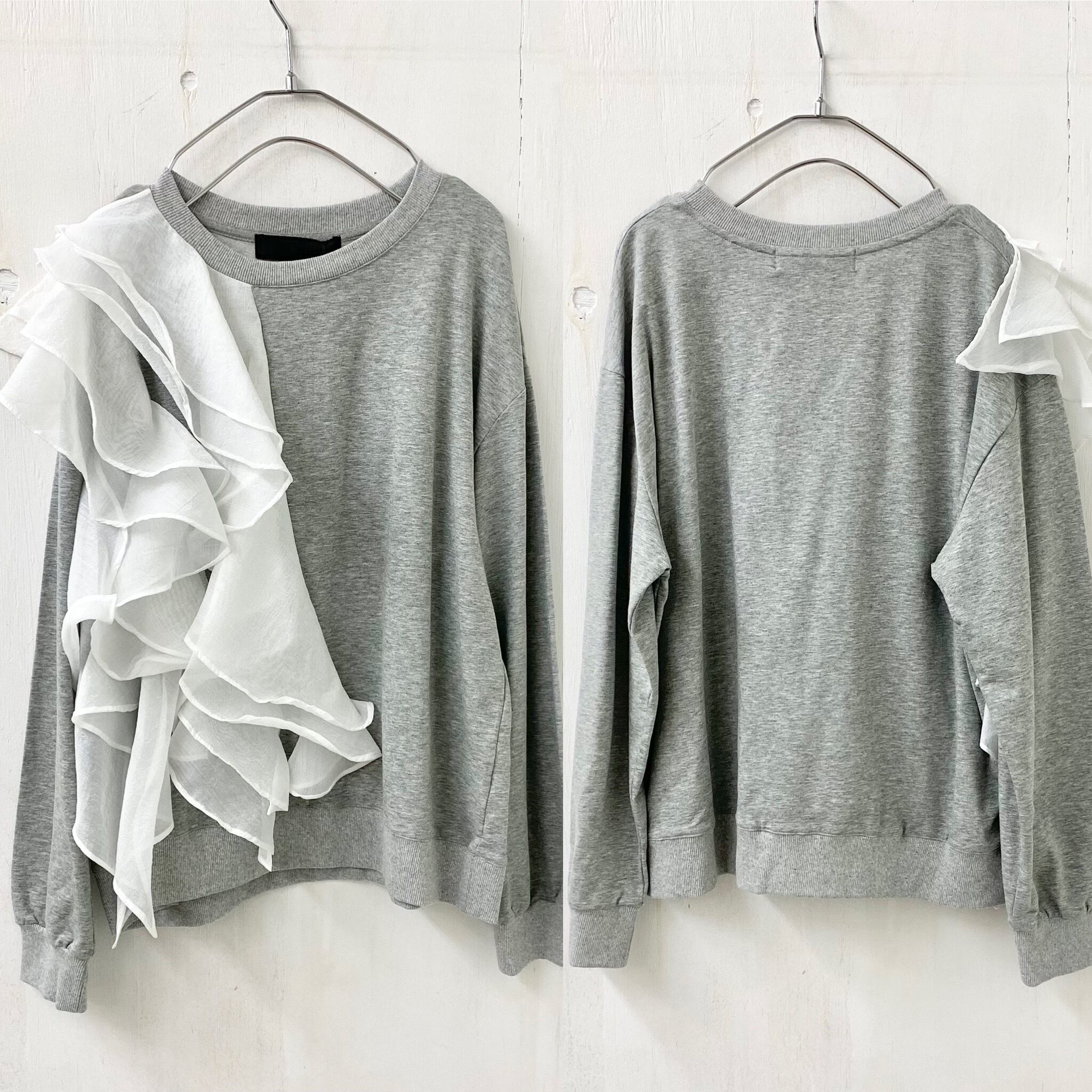【micalle micalle】ジョーゼット フリル付 ミニ裏毛 スウェット プルオーバー
