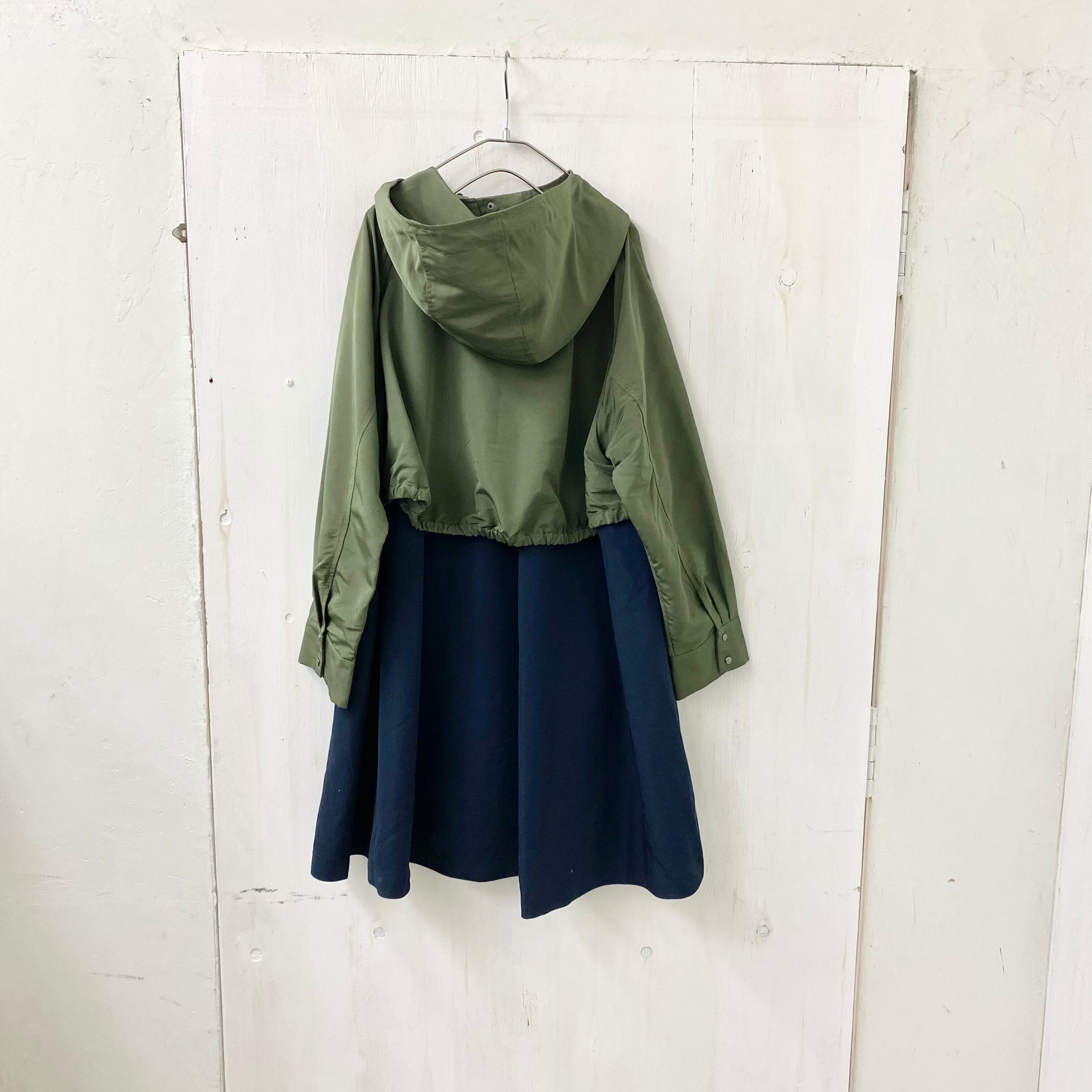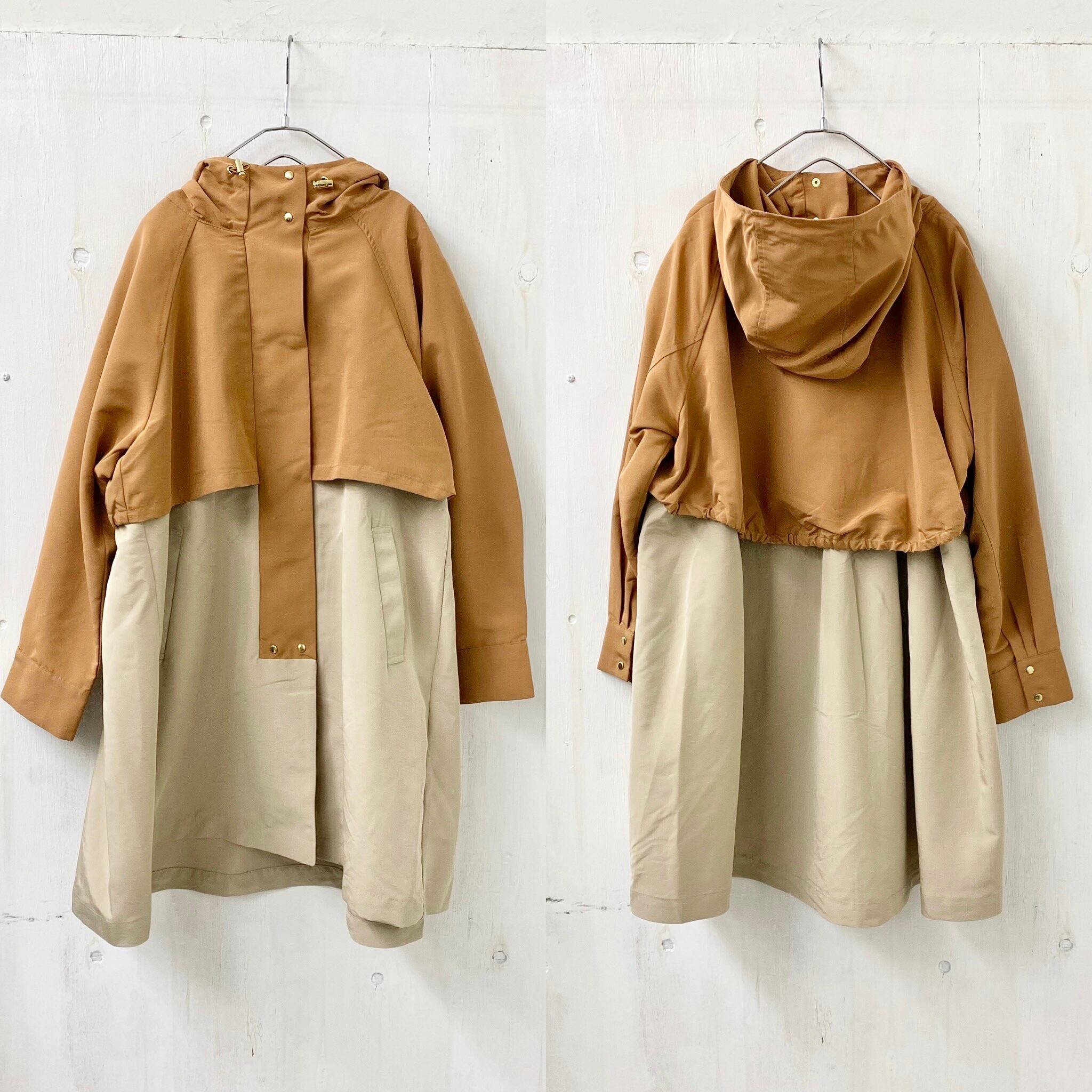 こちらは大き目なフードにバイカラーが可愛い個性的なコート。